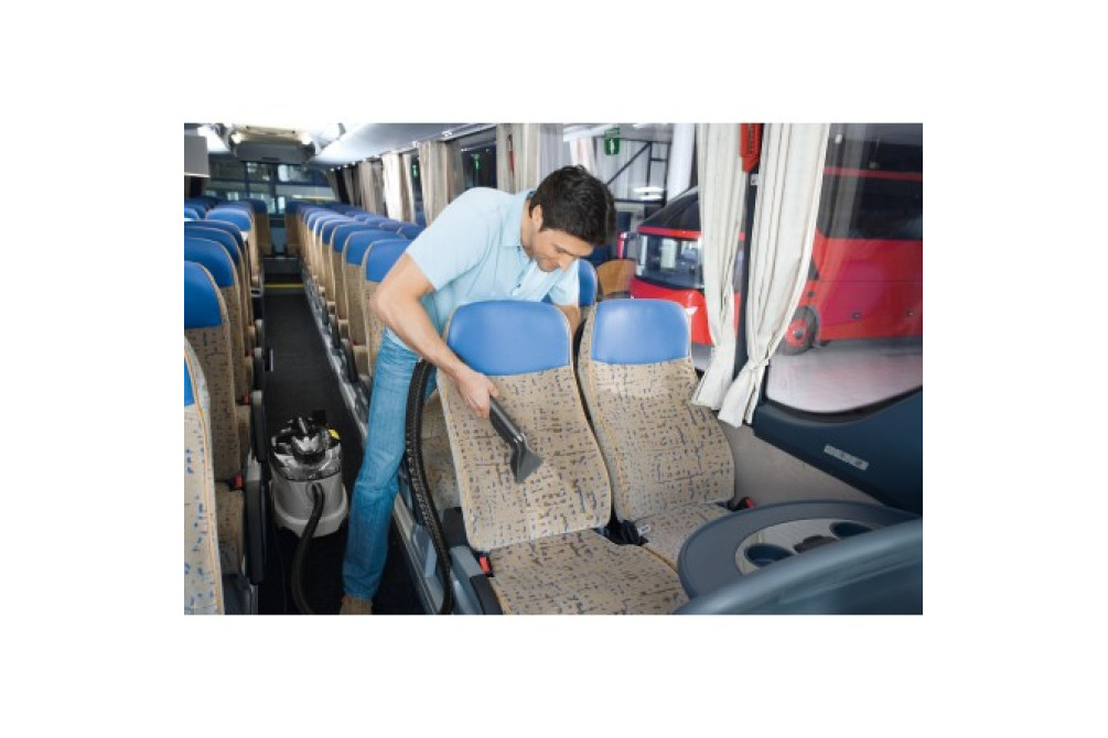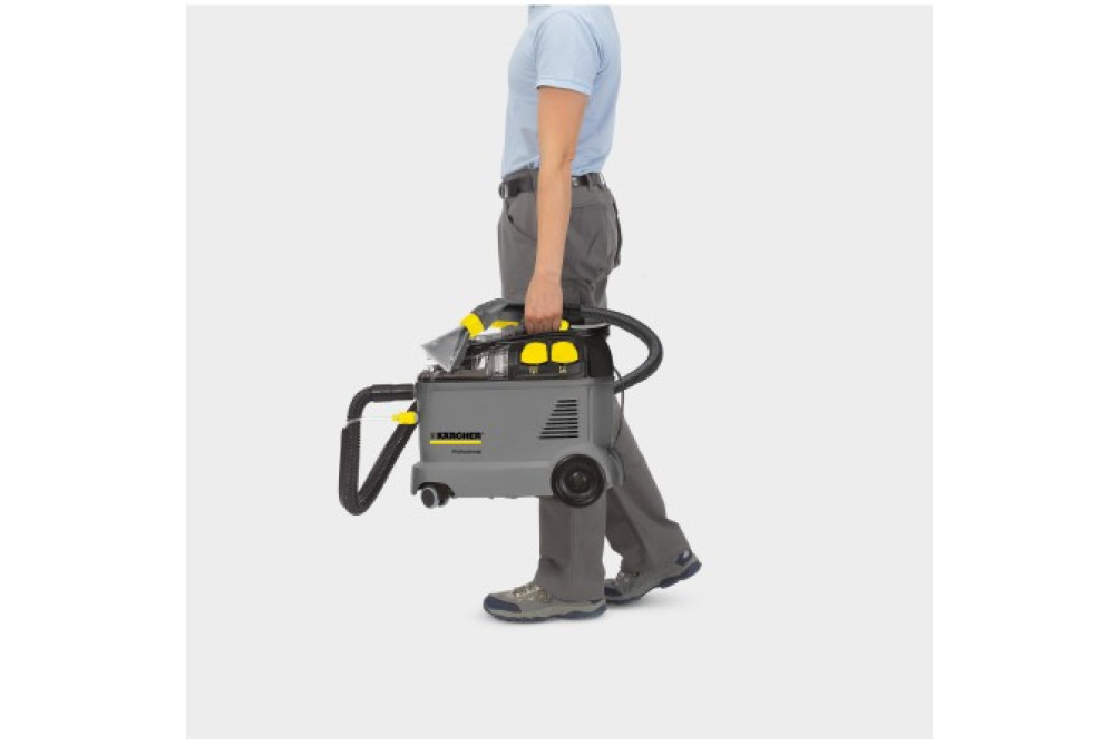Моющий пылесос Karcher Puzzi 8/1 С это мощный и компактный аппарат для профессиональной уборки. Отлично подходит для очистки всех видов ковровых покрытий, обивки мягкой мебели и салона автомобиля. Мощная турбина пылесоса обеспечивает низкую остаточную влажность поверхности. Пылесос компактный и легкий, что позволяет переносить его в одной руке. На корпусе моющего пылесоса расположены большие ножные выключатели. Макс. производит. по площади 12-18 м2/ч. Расход воздуха 61 л/с. Разряжение 236/23,6 мбар/кПа. Расход моющего раствора 1 л/мин. Давление разбрызгивания 1 бар. Объем бака для чистой воды 8 л. Объем бака для грязной воды 7 л. Мощность турбины 1200 Вт. Мощность насоса 40 Вт. Вес 9,9 кг. Размеры (ДхШхВ): 530 х 330 х 440 мм. Комплектация: Всасывающий шланг с интегр. подводкой воды м 2,5, Ручная насадка, Сетевой кабель 7,5 м, Насадка для мягкой мебели, Крюк для кабеля.
