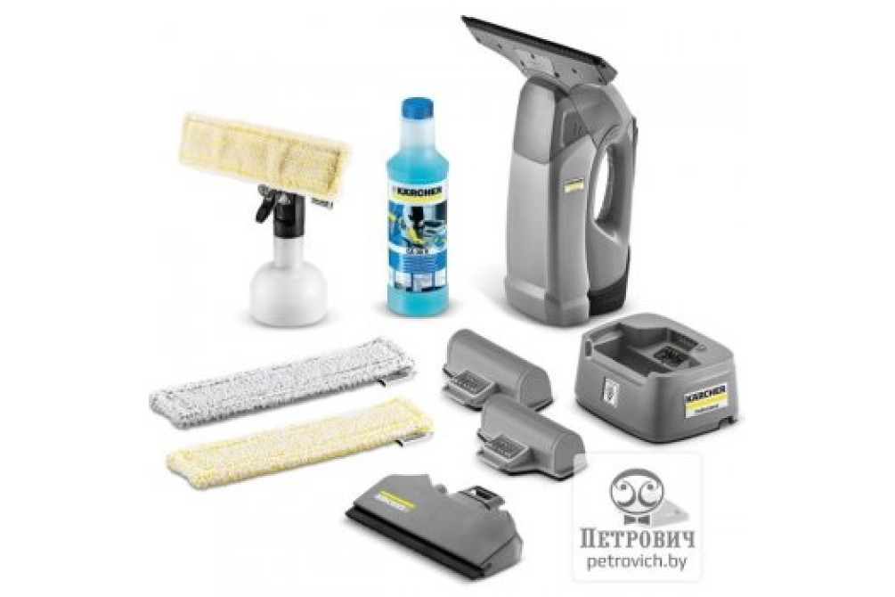 В комплекте: распылитель - 1шт, колба для распылителя - 1 шт., насадка для распылителя, 170мм - 1шт, накладка для насадки, 245 мм - 1шт.,козырел для насадки - 1шт., "голова" для всасывыющих насадок - 1шт., насадки всасывающая (широкая, 280мм - 1шт., узкая, 170мм - 1шт.), емкость для грязной воды с "головой", 0,2л - 1шт., зарядное устройство с блоком питания - 1шт., аккумуляторы 3,7В, 2,1А*ч - 2шт.