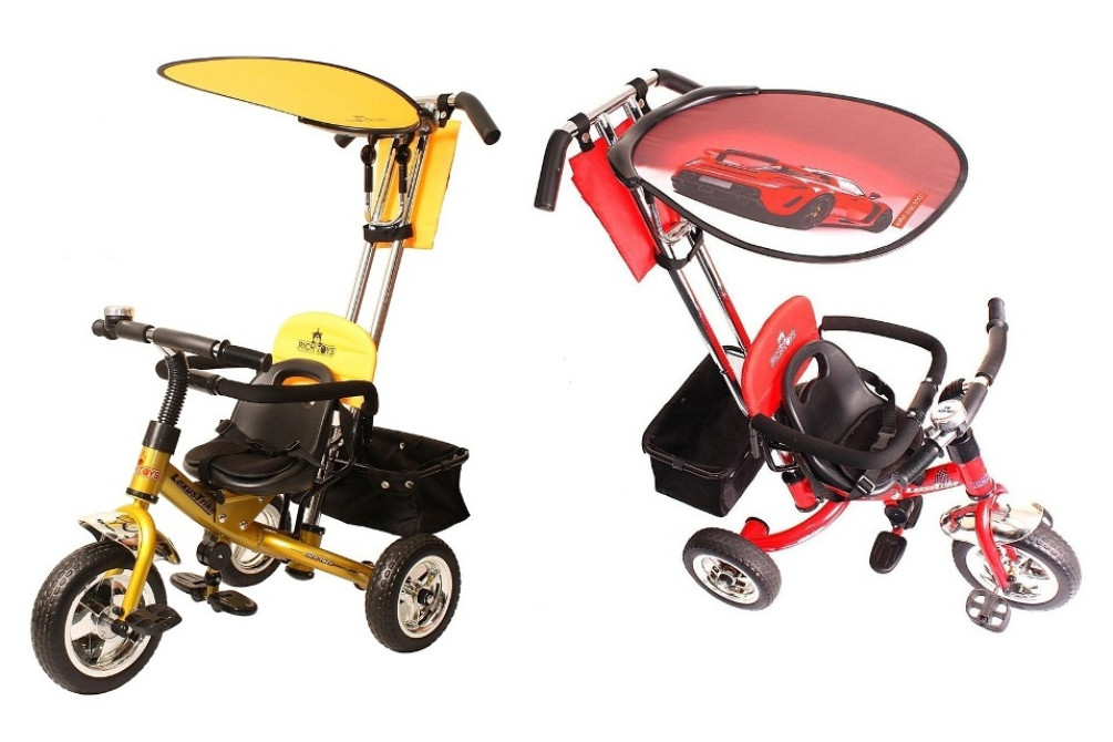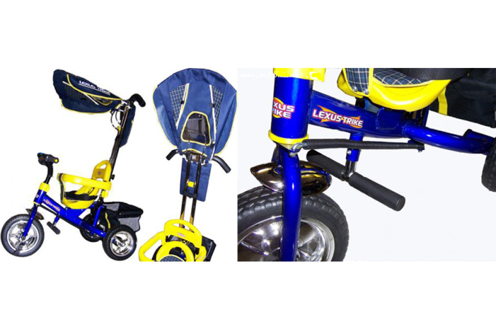 3-x колесный велосипед Lexus Trike оборудован бампером безопасности для маленьких детей, съемными подножками, звонком на руле и складным, солнцезащитным козырьком. Велосипед приспособлен к преодолению бордюров. Когда ребенок подрастет, можно снять родительскую ручку управления, багажную корзину, козырек, и таким образом Lexus Trike превратится в классический 3-х колесный велосипед. Диаметр переднего колеса 25 см, а задних — 22 см. Размеры: 86 х 50 х 112 см. Вес велосипеда 9 кг.