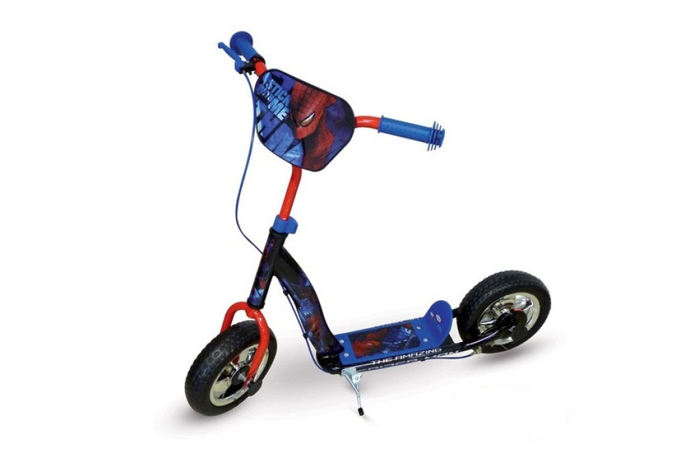 2-х колесный самокат AVIGO Spider-Man для детей от 3 лет и весом до 30 кг. Яркий, с интересным дизайном, изготовлен из алюминия, легкий и удобный в управлении. Площадка для ног с противоскользящим покрытием. Ручки с рельефной поверхностью и ограничителями позволяют крепко удерживать руль. Высота руля регулируется. Есть ручной тормоз.