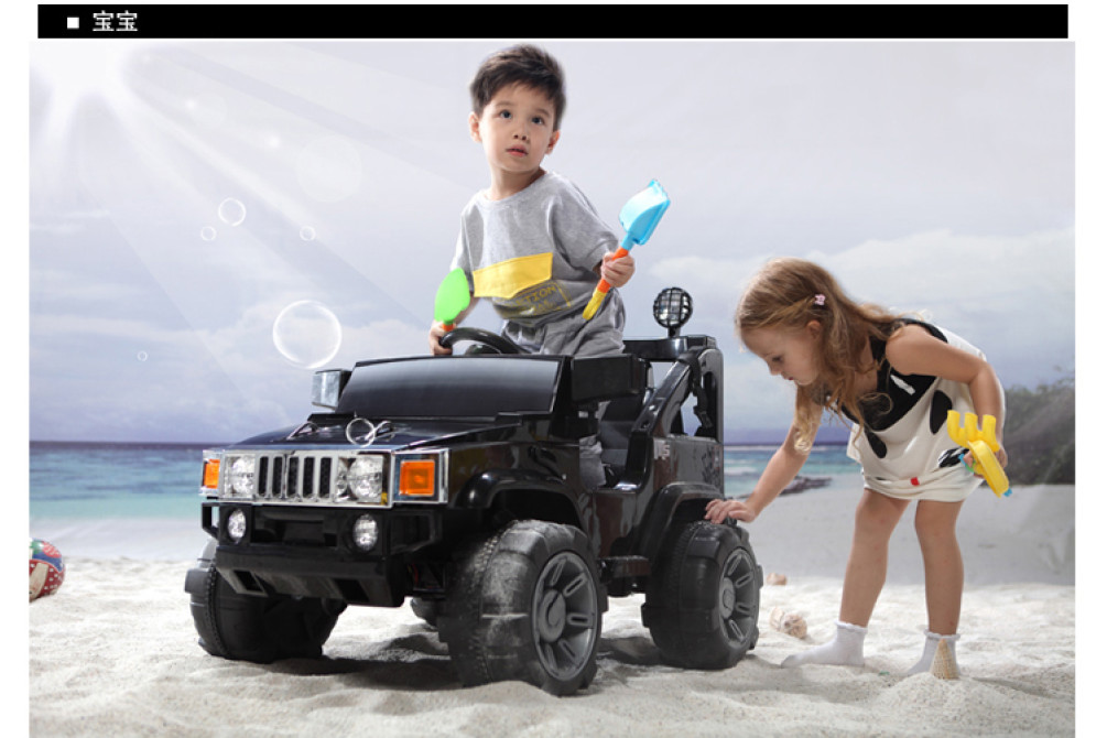 Детский электромобиль Kids Cars сделан в виде джипа Hummer. Рекомендуется детям от 1 года до 4 лет. Максимальная нагрузка до 18 кг. Джип имеет полнофункциональное управление с пульта радиоуправления (2 аккумулятора по 6V 10 Ah). Время работы аккумулятора 1 час. Время зарядки 8-12 часов. Светящиеся передние фары, зеркала заднего вида, удобное посадочное место, руль с сигналом, ремни безопасности, устойчивые колеса с широкой поверхностью — не игрушка, а настоящая сказка для вашего ребенка.