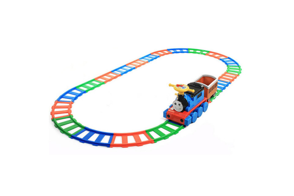 Geoby Электромобиль »Паровозик» — это желанная игрушка для любого малыша. Электромобиль-паровозик с вагончиком выдерживает нагрузку до 20 кг и предназначен для детей от 1 года до 3 лет. Длина железной дороги 8 метров (прямые рельсы — 10 штук, изогнутые рельсы — 12 штук). Есть прицепной вагончик, звуковые и световые эффекты. Ездит и вперед, и назад. Аккумулятор 6V.