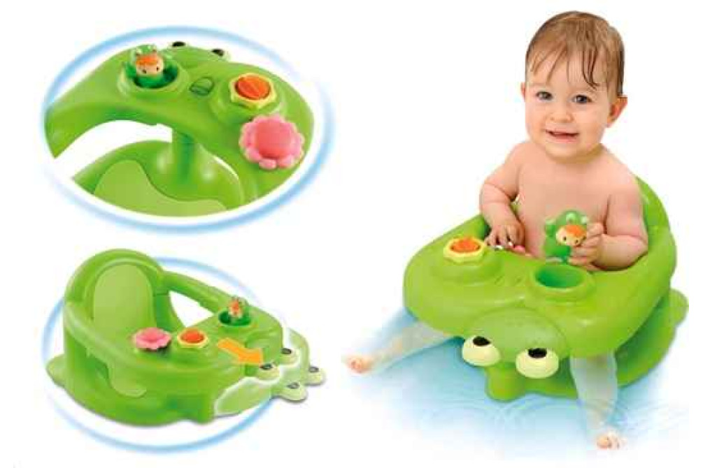 Для детей от 6 до 16 месяцев (весом до 13 кг). Для веселых игр во время купания. Два варианта игры: 1. Для малышей центр-стульчик, 2. Для старших детей центр закрепляется на кафеле ванной. Ребенок развлекается в ванне с игрушками центра. 1 вариант: Игровой центр-стульчик крепится на присосках ко дну ванны. Ребенок сидит в игровом центре играясь с игрушками в воде. В наборе: симпатичная куколка-брызгалка из мягкого пластика, мягкий цветочек, лодочка, крутящиеся и вращающиеся детали в игровом центре. 2 вариант: Игровой центр крепится на присосках к кафелю ванной. Ребенок сидит в ванне и развлекается с игрушками центра. Размер стульчика 440 х 440 х 270 мм.