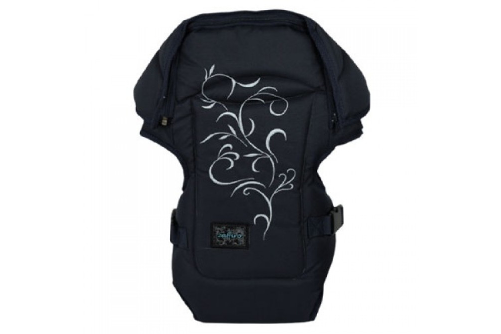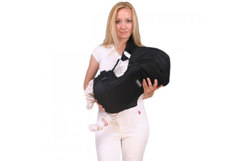 Широкие плечевые ремни имеют мягкие вставки, снижающие давление на плечи, и позволяют носить ребенка вертикально или лежа на боку, что облегчает кормление в дороге.