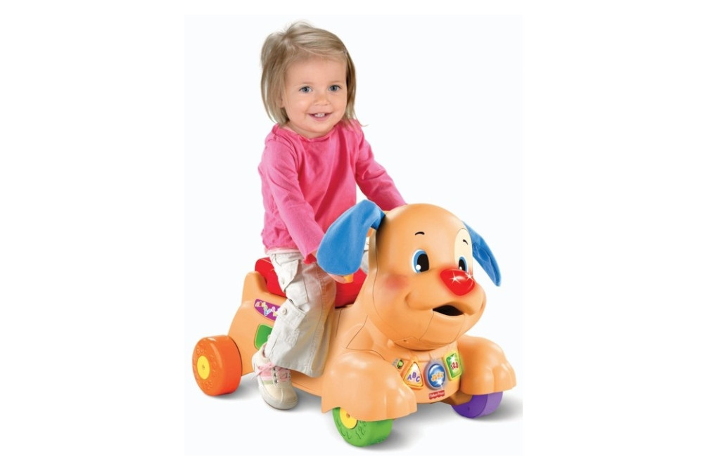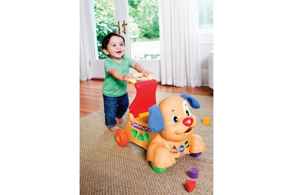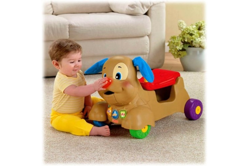 Каталка детская "Щенок" Fisher Price Возраст от 9 месяцев до 3 лет, максимальный вес 20 кг. Широкая ручка и прочная конструкция игрушки отлично справятся с функцией ходунков и поддержат ребенка в его первых попытках ходить. Ручку можно спрятать под сидение и ходилка превращается в прекрасную каталку. Малыш, сидя на спине щенка и отталкиваясь ножками, может кататься под веселую музыку. При движении щенок качает головой, шевелит ушками, мигают огоньки, играют веселые мелодии. Сбоку игрушки расположен сортер, малыш может забрасывать фигурки в него, а может кормить щенка, забрасывая фигурки в рот собачки.