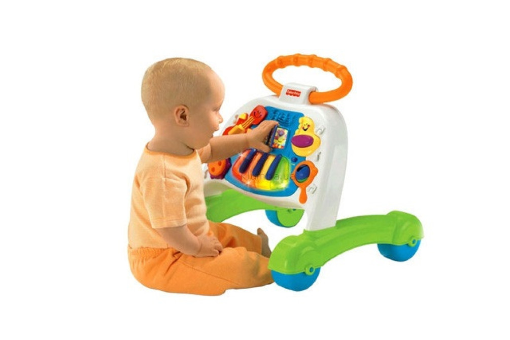 Ходилка-игровой центр Fisher Price прекрасно поможет малышу делать первые шаги. Устойчивая конструкция с направлением колес только вперед. Удобная широкая ручка. Надежный механизм тормоза. Музыкальный игровой центр на передней панели включает в себя гитару, саксофон, две погремушки и музыкальную книжку с изображением животных. Занимательные игры, световые и музыкальные эффекты надолго завлекут вашего малыша. Рекомендуемый возраст от 9 месяцев. Минимальный срок проката — 3 недели.