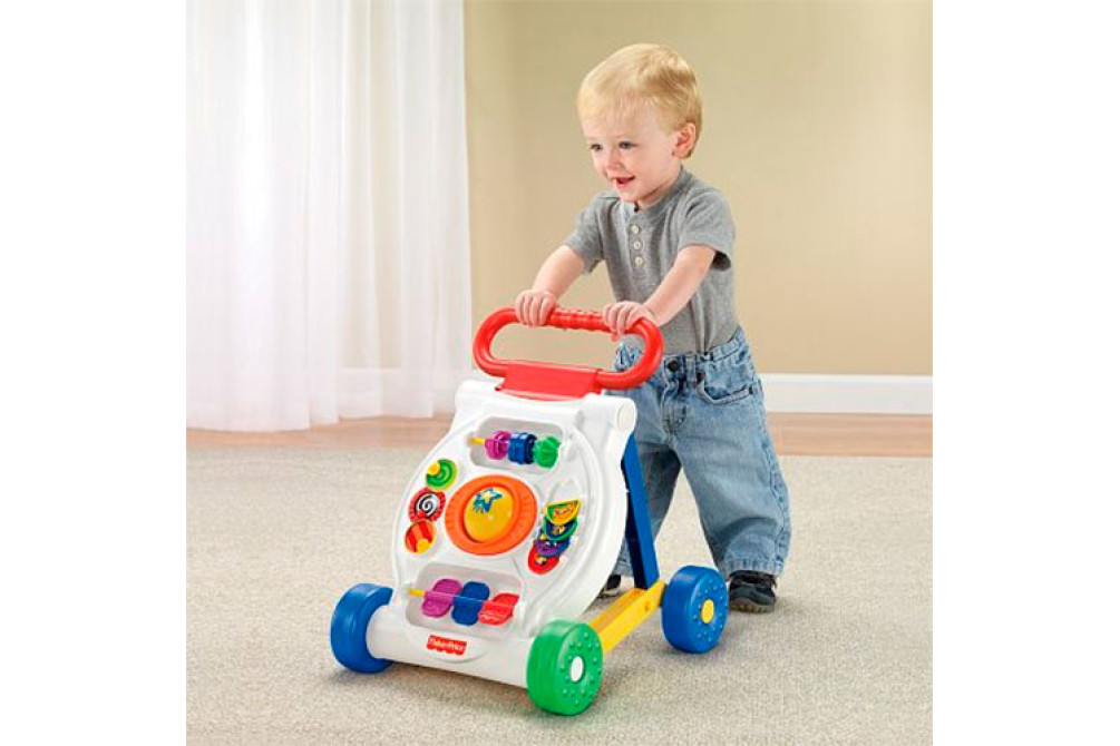 - ходунки собраны, малыш учится ходить, опираясь на них.