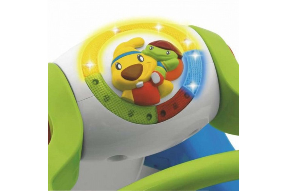 Регулировка ручки в соответствии с ростом ребенка. Регулировка наклона основания ходилки. Прорезиненные колеса. Музыкальные и световые элементы. Максимальное расстояние от пола до ручки ходилки 45см.