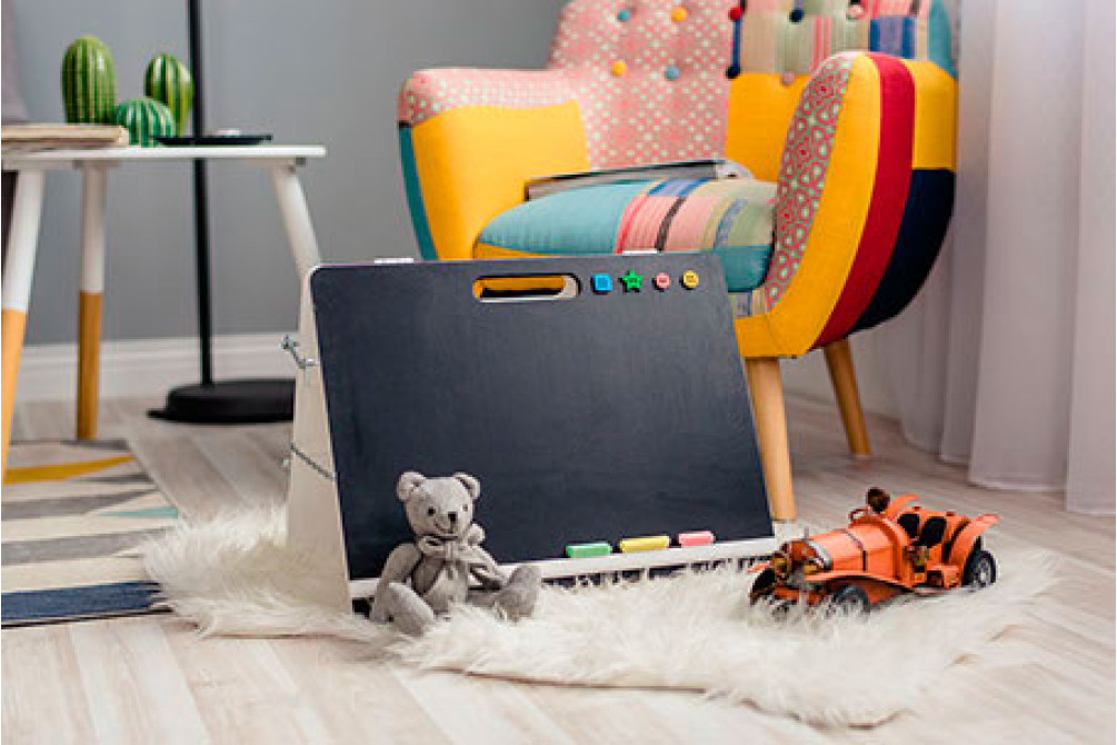 В разложенном состоянии бизиборд надёжно фиксируется и не имеет возможности случайно сложиться или опрокинуться на ребёнка. Бизиборд очень удобно переносить с места на место не складывая, а так же доска не занимает много места в сложенном состоянии.