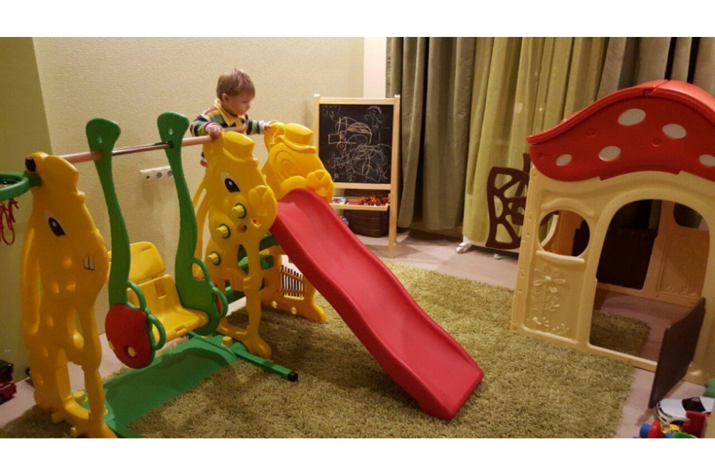 Описание: * Игровой комплекс окрашен в яркие цвета; * В основе изделия используется полый высокопрочный структурный пластик с надежными крепежными элементами; * Комплекс не имеет острых углов, все детали закруглены; * Боковая часть лесенки сделана в виде силуэта зайца с улыбающейся мордочкой; * Благодаря широким ступенькам малышу будет легко подниматься наверх; * Удобные, красивые качели, с изображением божьей коровки на боковинах; * Специальное игровое кольцо; * Легко содержать в чистоте; * Для детей от 1,5 - 8 лет; * Предназначено для использования, как на улице, так и в закрытых помещениях; Благодаря горке «Зайчик» Ваш ребенок сможет прекрасно проводить время со своими друзьями. Это безопасное и увлекательное времяпровождение для детей! Комплектация: * Пластиковая горка, * Лесенка, * Кольцо баскетбольное, * Качели. Параметры: * Общие размеры: 160*111*111 * Высота горки: 1,11 м. * Занимаемая площадь: 1,11 х 1,60 м. * Допустимая нагрузка: 80 кг. * Масса изделия: 22,0 кг.