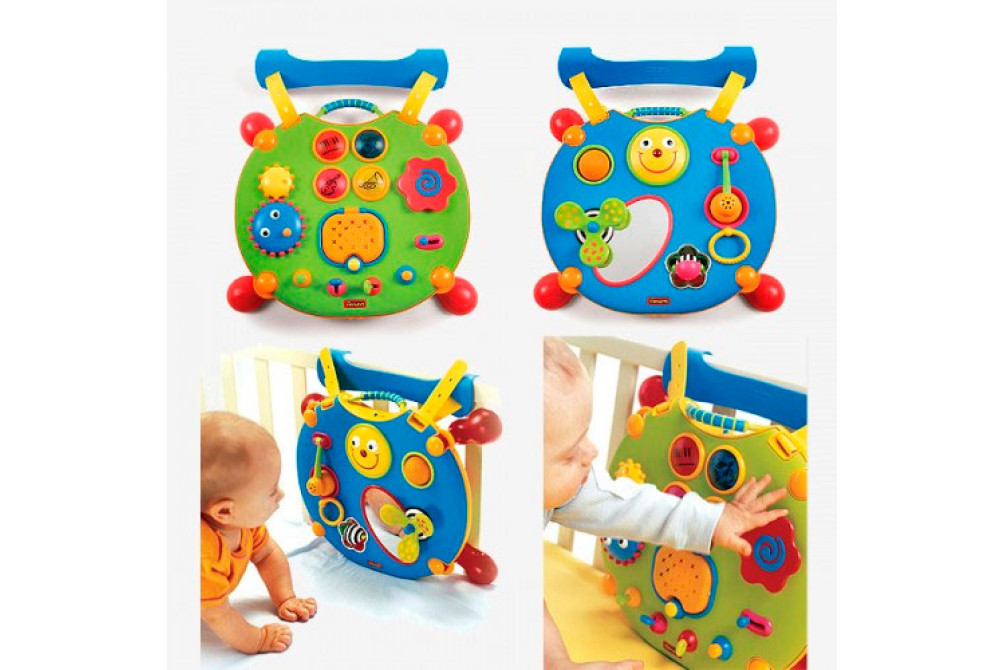 Этот удивительный развивающий центр подойдет как совсем маленьким деткам, только начинающим осваивать свои ручонки (от 3-х месяцев), так и деткам постарше (до двух лет), благодаря многофункциональной двусторонней игровой панели, которая может как крепиться на кроватку, так и превращаться в низенький столик с нескользящими ножками.