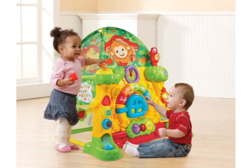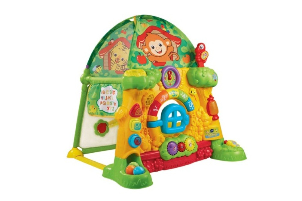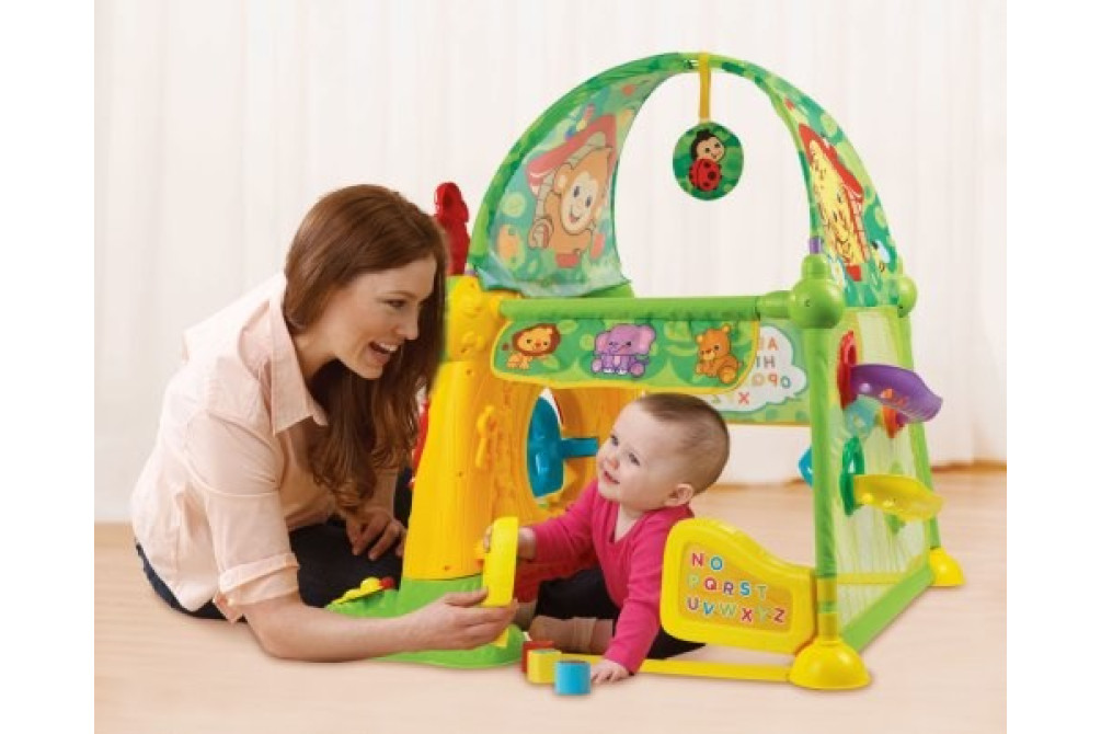 Игровой центр "Домик на дереве" Grow and Discover Tree House Toy Vtech Рекомендуемый возраст 6 месяцев и старше. Развивающая игрушка Discover Tree House – это целый комплекс по стимулированию и развитию как физической, так и интеллектуальной сфер малыша. Играть с домиком-палаткой так интересно и увлекательно! Множество деталей и игровых элементов, расположенных по всем 4 стенкам дома. Открывающиеся окошко и двери, детские часы с настоящими стрелками, поворотные шестеренки, сортер для изучения форм и цветов, желоб для забрасывания шариков, поворотная книжка-бабочка – это только малая часть игровых элементов. А как интересно играть в прятки, сидя тихонечко под крышей домика. Яркие огоньки и более 40 игривых мелодий, песен и звуков привлекут внимание вашего ребенка.