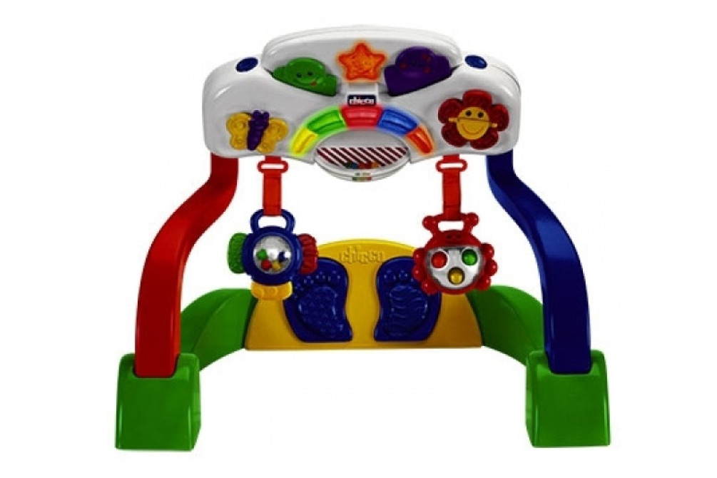 Игровой гимнастический центр Chicco Рекомендуемый возраст начиная с 3 месяцев. 2 режима работы. Светомузыкальные эффекты. Работает от батареек типа АА. Играть с детским развивающим центром можно лежа на животе или на спинке, можно подключать подставочку для тренировки ножек. Подставка для ножек издает забавные звуки при касании ее ножками. Верхняя часть тренажера снимается и крепиться к бортикам кроватки или в коляску. 2 подвесные игрушки при касании активизируют музыку и свет, яркие лампочки, поочередно загораясь, привлекают внимание ребенка. Игра с активным детским тренажером помогает в развитии координации и двигательных навыков.