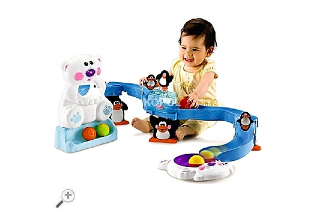 Игровой комплекс »Ледяные горки» — это светомузыкальная игрушка с цветными шарами для малышей от 6-ти месяцев. Комплекс имеет 4 ярких шарика, также звуковое и световое сопровождение. У большого белого медведя музыкальный нос, при нажатии на который раздается веселая песенка. Малыш просто сидя может закидывать шары в медведика или отдельно играть с ними, при этом любуясь на мерцающие огоньки и слушая музыку. Многофункциональная игрушка для развития мелкой моторики ребенка. Поможет малышу в его первых физических упражнениях. Длина игровой стойки 122 см. Минимальный срок проката — 1 неделя.