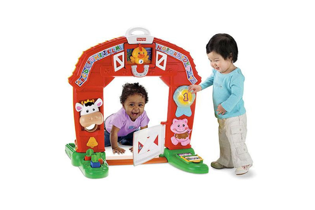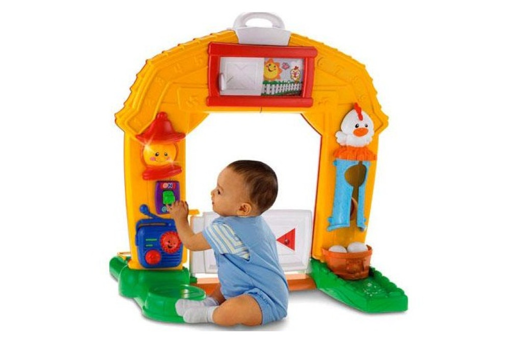 Можно покормить корову, бросать яйца в корзину, включать радио, вращать, нажимать, крутить и трогать, и все сопровождается веселыми песенками.