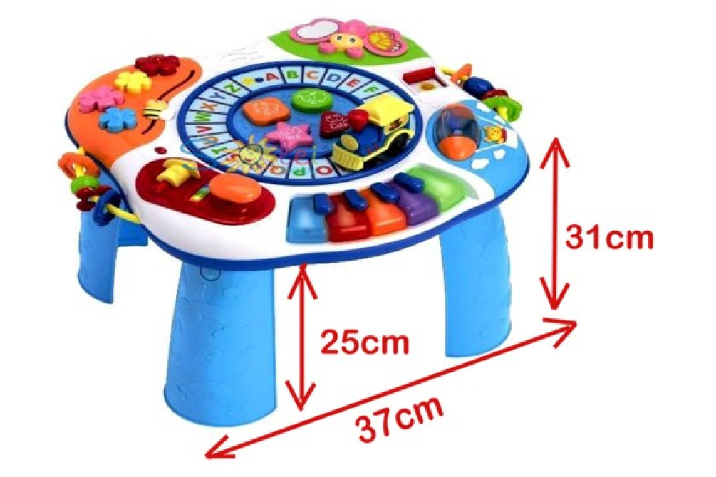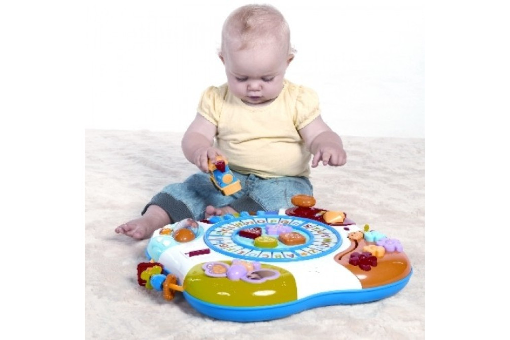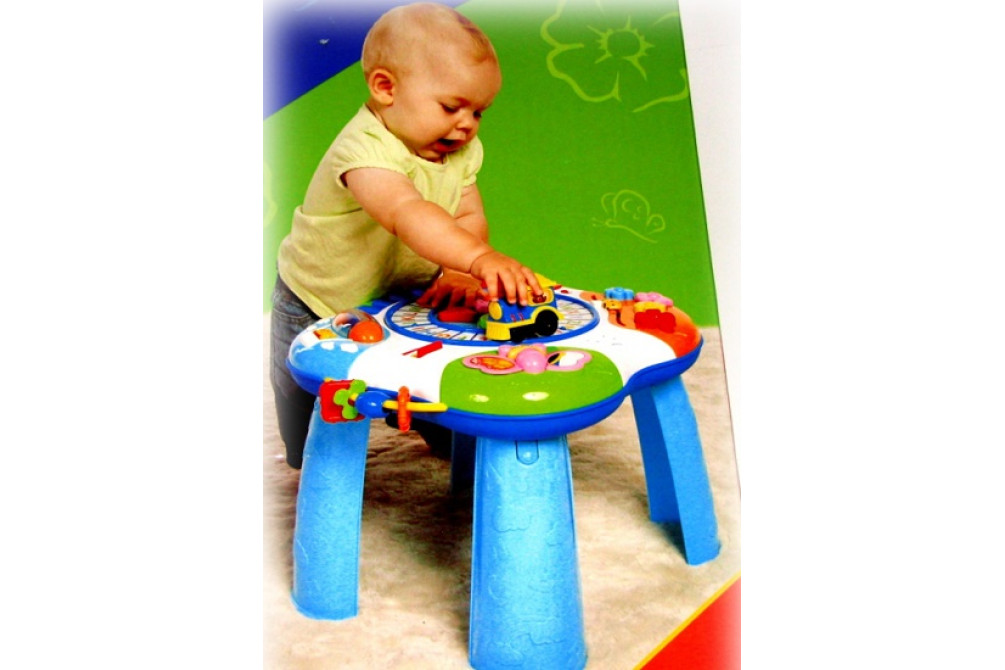 Для самых маленьких используется съемная столешница, для детей постарше столик служит опорой, держась за него можно топать по кругу.