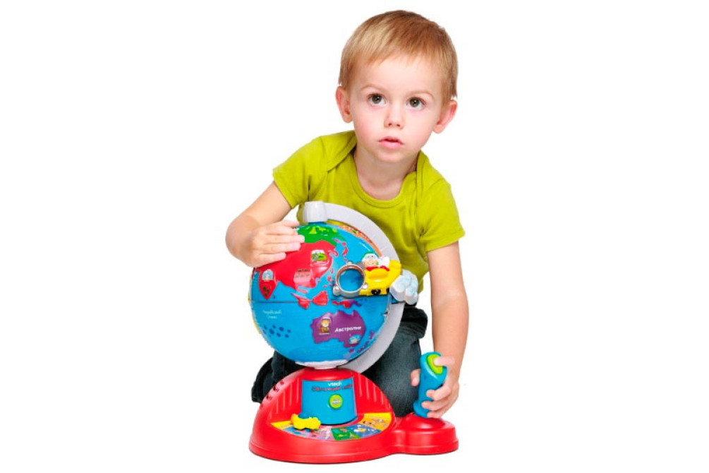 С интерактивной развивающей игрушкой Обучающий Глобус, Ваш малыш сможет облететь весь земной шар! Управляя забавным самолетом, с помощью джойстика, ребенок совершит кругосветное путешествие и ознакомится с целыми континентами, народами, странами и достопримечательностями. Когда глобус вращается, самолет издает реалистичные звуки полета. 5 программ позволят ребенку слушать музыку, познавая мир или язык разных народов. После увлекательного полета, глобус задаст малышу несложные вопросы, с помощью которых он сможет закрепить материал. Игрушка может самостоятельно отключаться, с целью экономии энергии.