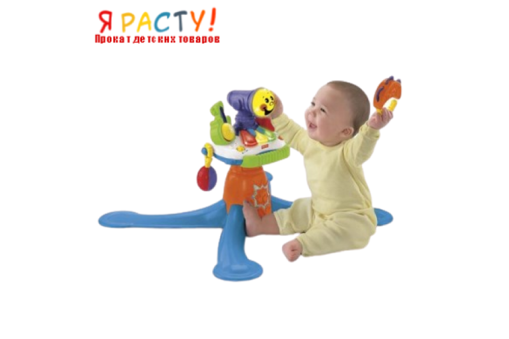 Подставка для микрофона - идеальная высота для ребенка, она регулируется, чтобы адаптироваться к детям разных возрастов. Кроме того у микрофона есть практичная ручка для удерживания во время игры. У игрушки два варианта игры: караоке и концерт. Воспроизведение 10 песен (6 с текстами песен), музыкальные аккорды, серия нот, звуковые эффекты, а также произносит смешные фразы. Микрофон вознаграждает ребенка, когда он произносит звуки, поет и говорит с ним. Ребенок может сыграть 6 песен с помощью клавиш, которые загораются. Рекомендуемый минимальный возраст 6 месяцев и более.