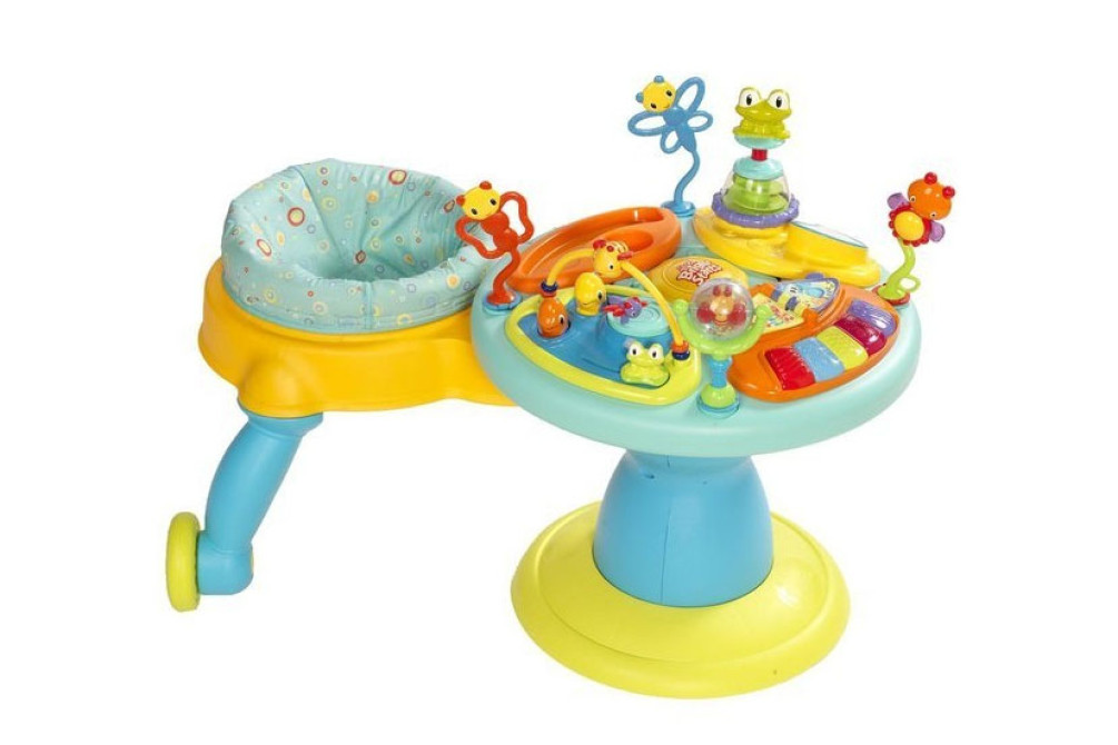 Развивающий центр-бегунок — качественная игрушка для малышей от 5-ти месяцев до 2-х лет, полностью безопасна. Грамотно разработаны все детали, которые на самом деле позволяют развиваться ребенку. Принцип игры таков — ребенок перебирая ножками приводит в действие колесики бегунка и тот двигается вокруг столика, что обеспечивает безопасность малыша при передвижении. Деткам нравится такая самостоятельность, а ребенок постарше с интересом играет музыкальной панелью. Спокойно можно оставить малыша и заниматься своим делом. Свободные минутки для мамы! Прекрасно развивается координация, цветовое восприятие. Сиденье отстегивается, хватает на долгое время, даже когда ребенок подрастет. Центр можно превращать в столик. Минимальный срок проката — 1 неделя.