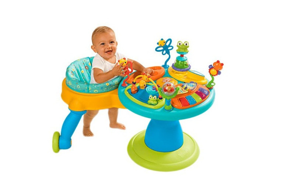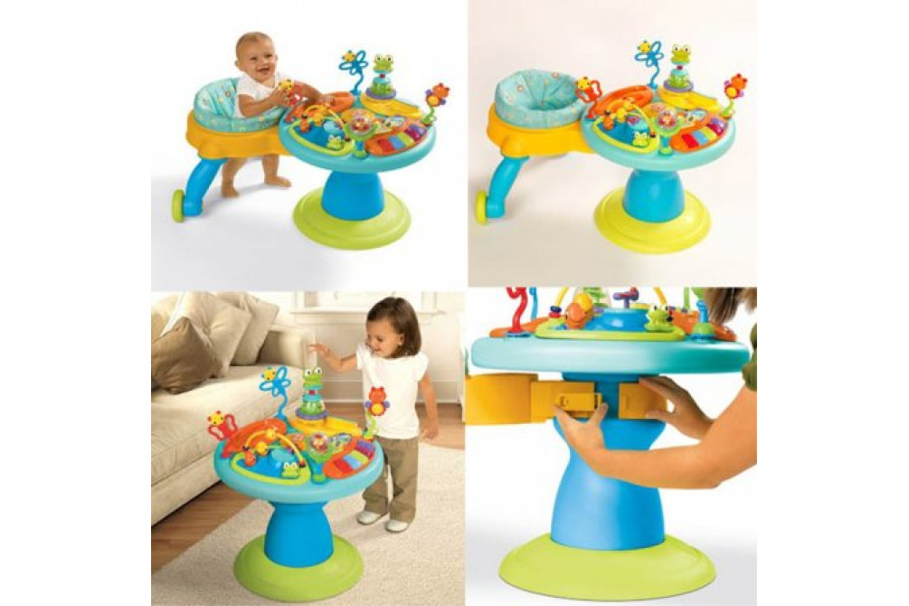 В комплект входит: игровой столик и пристегивающийся бегунок с сиденьем, поворачивающимся на 360°.
