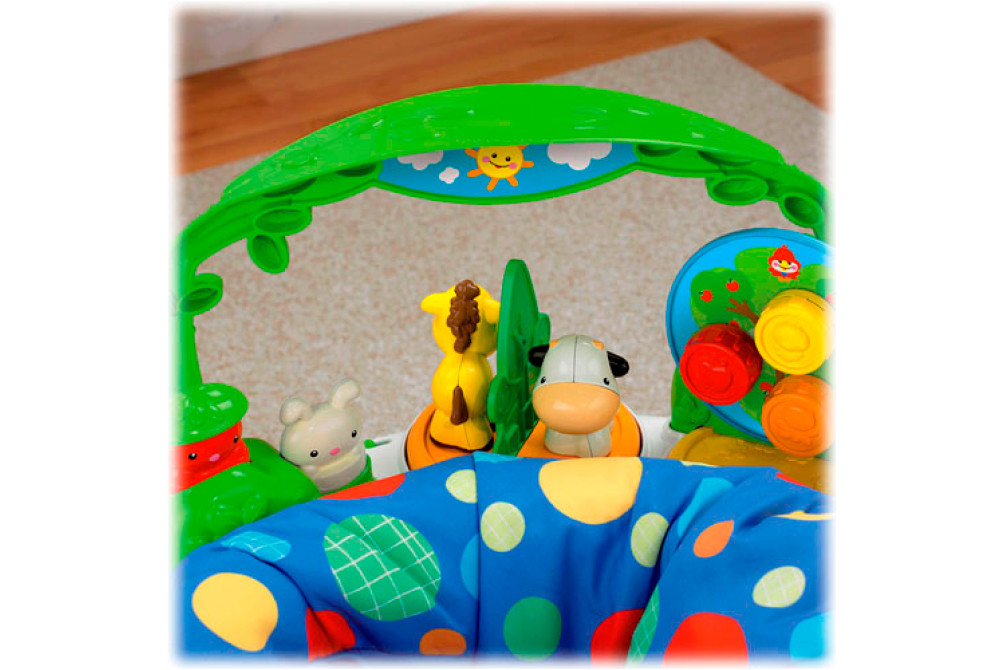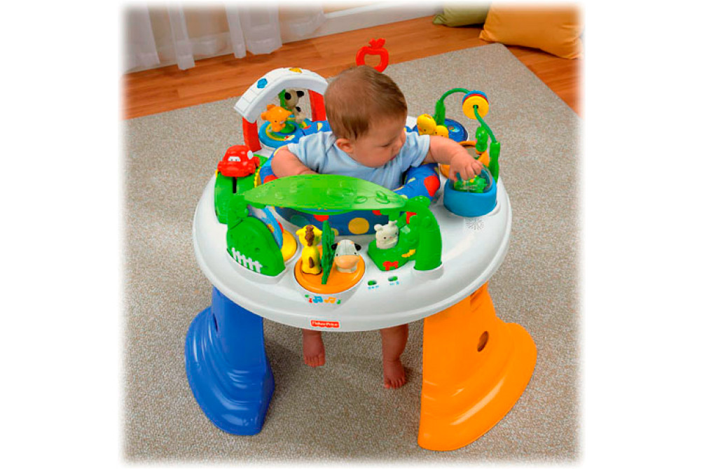 Игровой центр предлагает крохе множество развивающих элементов: кнопочек, роллеров, шариков на спиральке, которые помогают развивать зрительную координацию.
