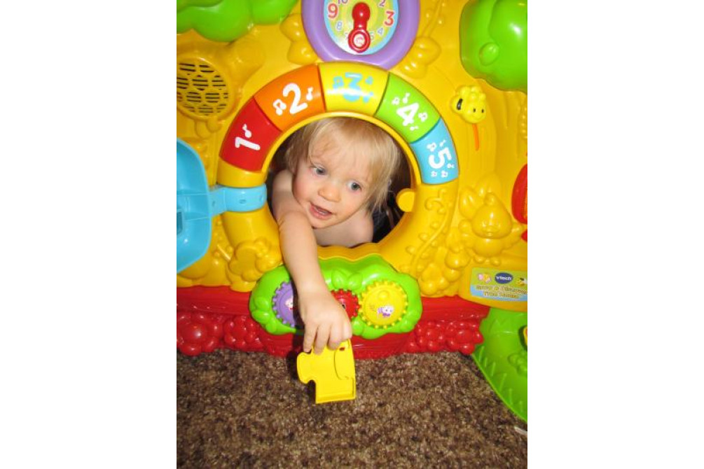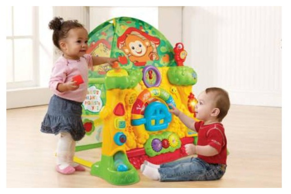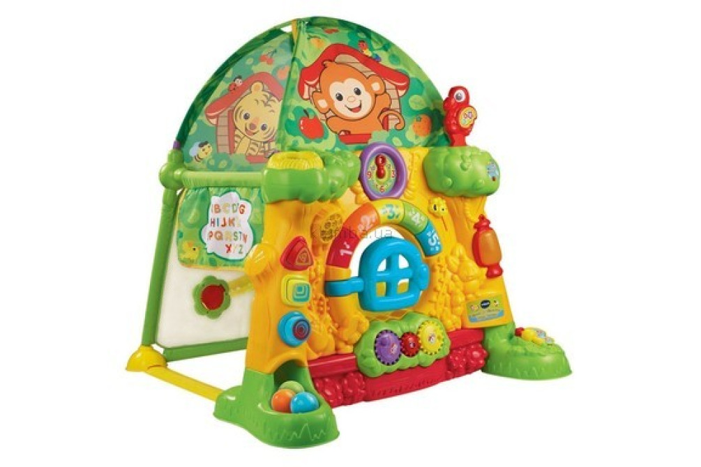 Развивающий домик-палатка Grow and Discover Tree House Toy Vtech рекомендован от 6 месяцев до 3-х лет. Этот восхитительный и яркий домик палатка– замечательная игрушка для любопытных, любознательных и активных малышей, со множеством развивающих элементов снаружи и внутри. Более 20 развивающих функций. 40 песен, мелодий, звуков и фраз. У домика забавные и яркие стеночки с разнообразными рисунками и забавными мордашками. На каждой из них находятся развивающие, обучающие и занимательные игры, их возможности надолго займут маленького непоседу. Забавные игрушки, разнофактурные элементы — все направлено на развитие мелкой моторики. Можно играть в прятки, можно звонить в дверь, нажимать кнопочки, можно забрасывать шарики в специальное отверстие. Также малыш может поиграть в сортер, помогающий ребенку научиться распознавать формы и цвета. Каждая деталь способна захватить внимание малыша.