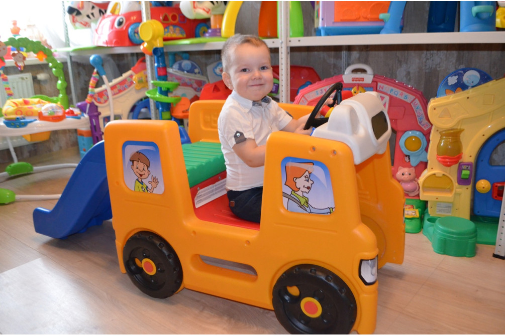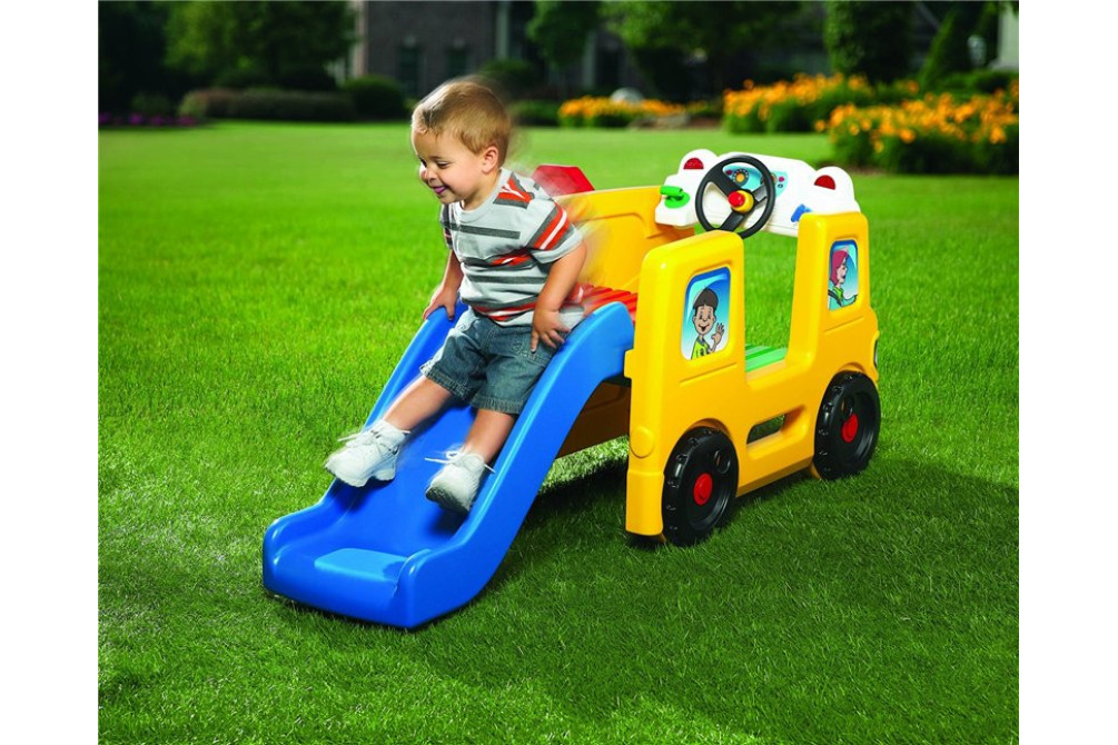 Для детей от года до 3 лет. Можно играть в водителя, в домик или кататься на синей горке, которая примыкает к автобусу сзади. Реалистичная панель управления. Размеры 150 x 79 x 65 см. Вес 14,3 кг. Только самовывоз.