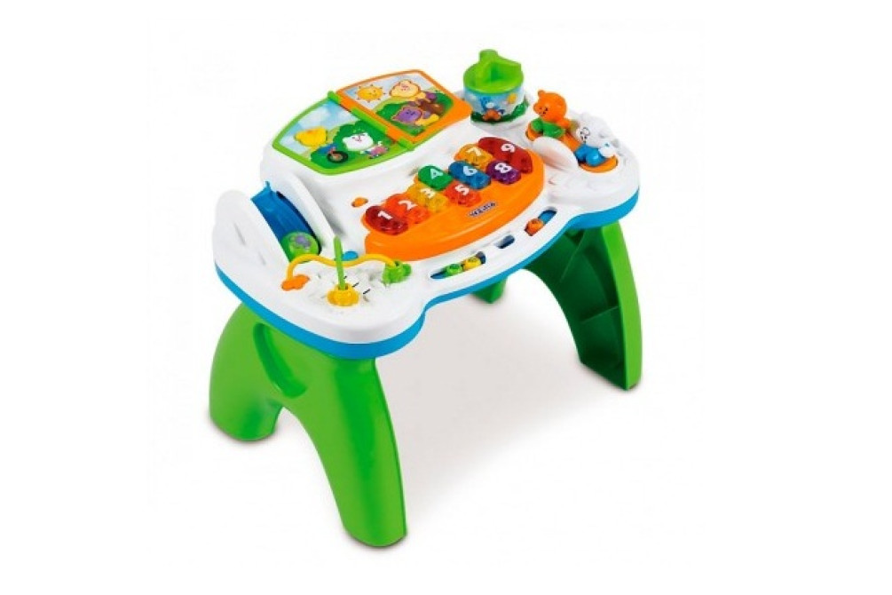 Игровой столик Weina предназначен для детей от 9 месяцев. Он поможет вашему малышу развить мелкую моторику. Покрутив карусель, он услышит мелодию и увидит мигающие веселые огоньки. Маленькие пчелки, сообщат ему об этом звуковым сигналом, долетев до тучки. Поиграв Ваш ребенок познакомится с цифрами, цветами, при этом все это будет сопровождаться разными звуками и подсветкой. Если ваш ребенок еще не так уверенно стоит на ножках, он сможет использовать игровую панель без ножек, для игры на полу. Предназначен для детей от 9 месяцев. Съемная верхняя панель, можно использовать для игры на полу. Знакомит ребенка с цифрами и цветами. Выполнен из высококачественного пластика.