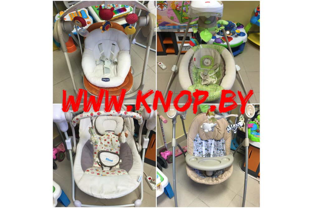 Детские электронные 6-скоростные музыкальные качели с 4-мя положениями наклона спинки.