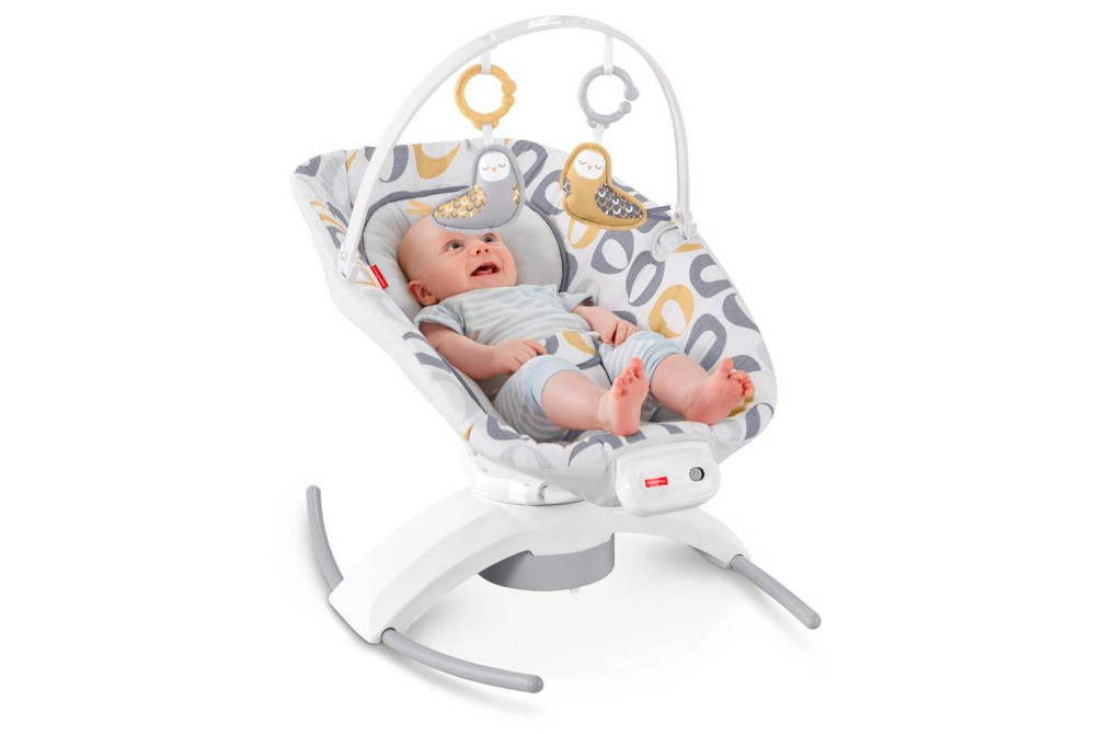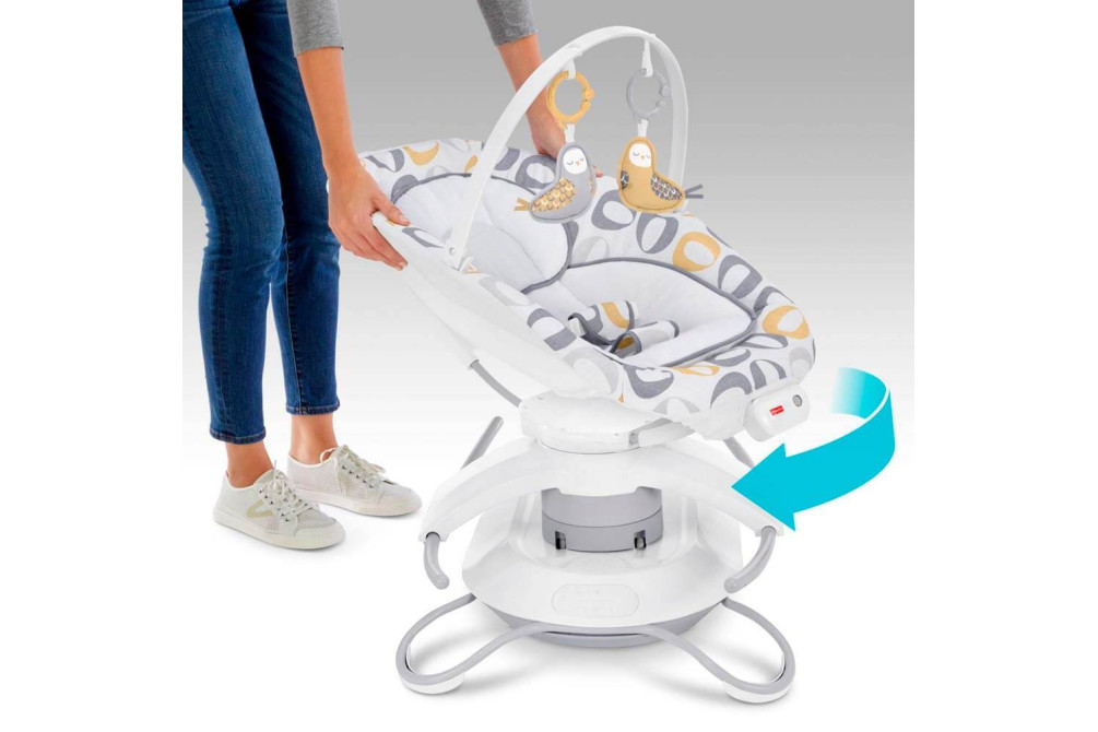 Качели-шезлонг 2-in-1 Soothe'n Play Glider Plus "Планер" от Fisher-price можно использовать от рождения до того момента, когда ребенок научиться сидеть самостоятельно или достигнет веса 11 кг. Качели имеют современный дизайн не занимают много места. Планер может раскачиваться вперед-назад или из стороны в сторону на шести различных скоростях, с 16 успокаивающими песнями или звуками природы на выбор. А детское кресло снимается, превращаясь в переносную качалку с успокаивающими вибрациями для дополнительного комфорта. Сенсорика: дружелюбные игрушки-животные над головой развивают зрительные навыки вашего ребенка, а нежная музыка стимулирует его слух.