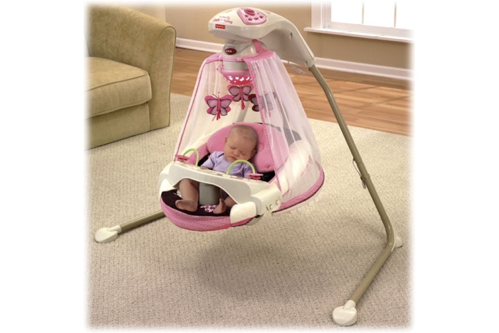 Колыбель-качели Fisher Price "Бабочка", с проектором и балдахином, для детей до 11 кг. Спокойная мелодия, оригинальная игра света и мягкие покачивания за считанные минуты успокоят малыша. Люлька подвешивается в 2 положениях: колыбелька в лежачем положении – для самых маленьких, качели – в полусидячем положении для малышей постарше. Раскачивается по 2 направлениям: вперед-назад и из стороны в сторону. В комплекте: колыбель-качели с блоком управления на металлическом каркасе, мягкий чехол на люльку, прозрачный балдахин, 4 мягкие игрушки для подвешивания к мобилю, съемная подставочка-столик с изогнутой трубочкой и игрушками на ней, регулируемый ремень безопасности с 2 застежками. Размеры колыбельки: 72 х 110 х 105 см. Работают от сети.