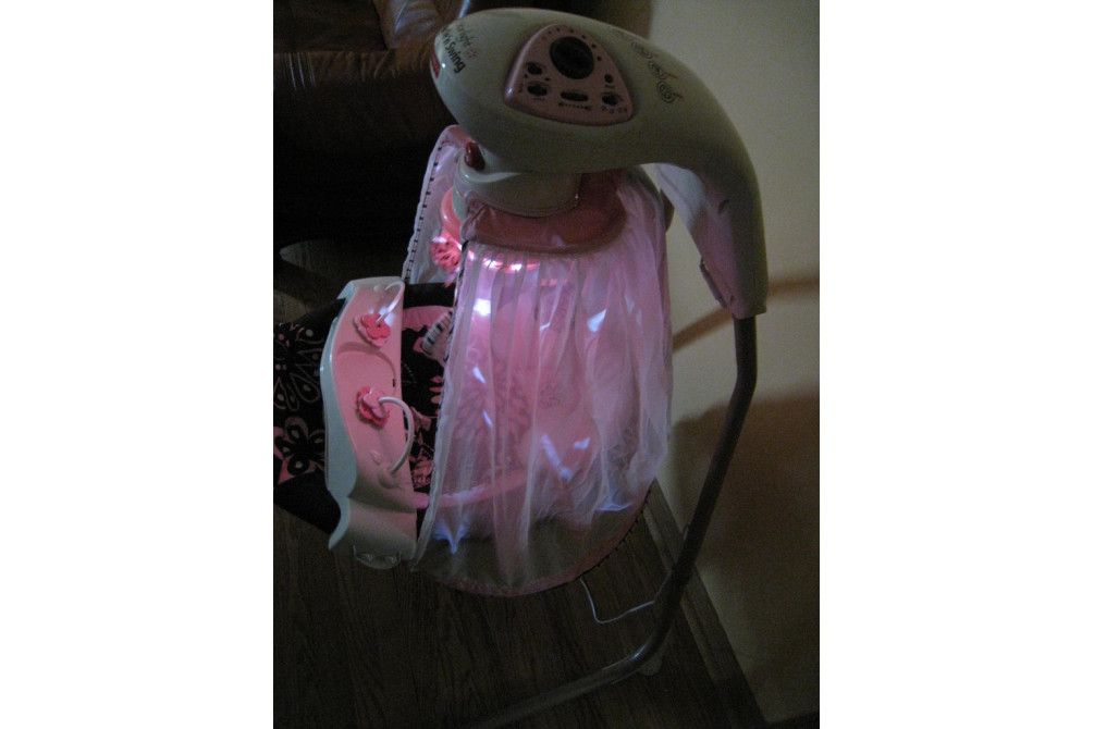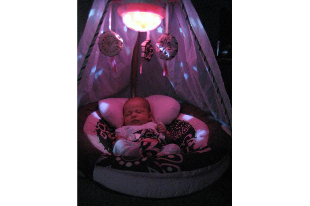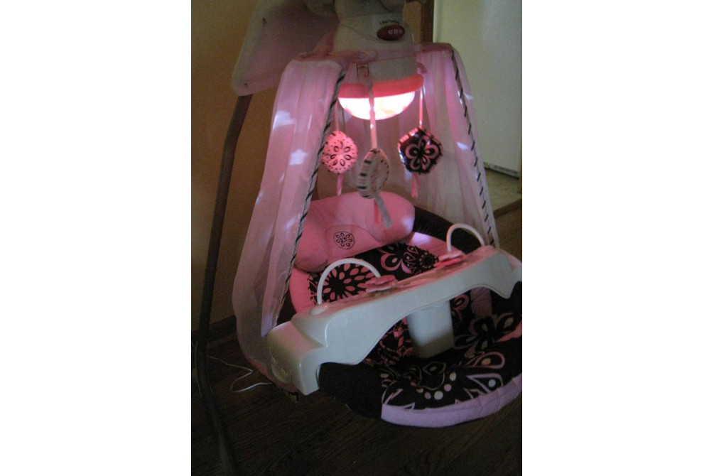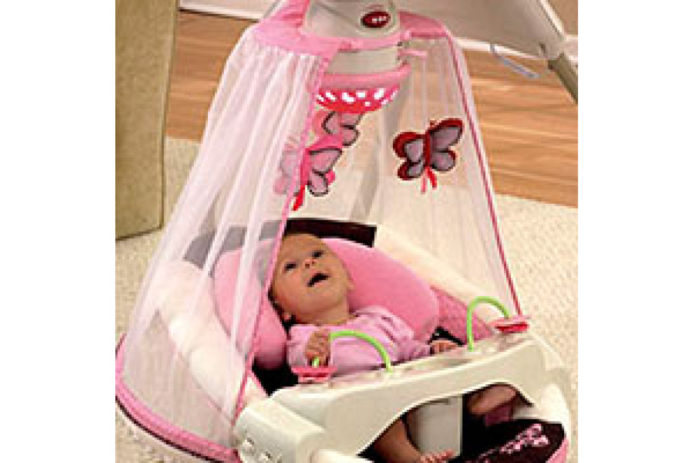 Для детей весом до 9 кг. 3 плюшевые игрушки и купол со световыми проекциями. Сиденье устанавливается в 2-х положениях — сидя и полулежа. Направления движения: вправо-влево и вперед-назад. 6 скоростей укачивания. 16 мелодий (8 развлекательных + 8 успокаивающих) и 3 звуковых эффекта. Съемный столик. Работа от сети или 4-х батареек LR 20 (в комплект не входят).