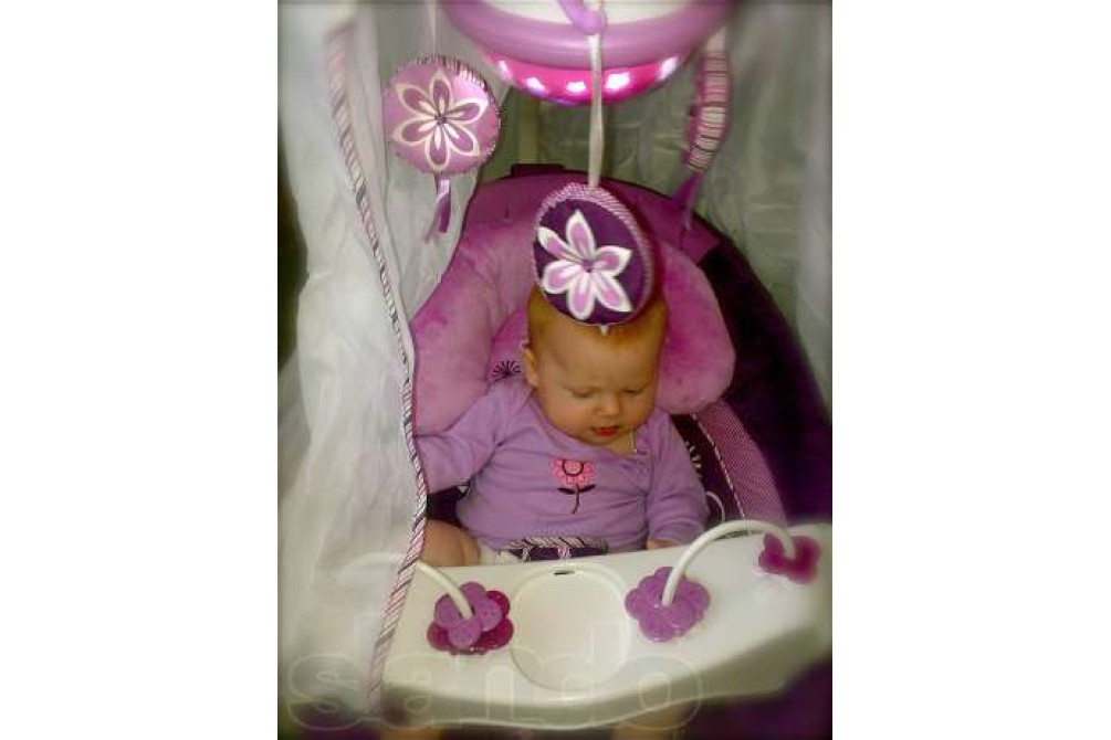 Для детей весом до 9 кг. Мобиле с цветными игрушками и проектором. Мелодичная музыка, звуковые эффекты, оригинальная игра света и мягкие покачивания. 2 положения спинки люльки. 2 направления качания: вперед-назад как классические качели или из стороны в сторону как классическая колыбель. 3 вращающиеся мягкие игрушки; Поворотное сидение. Сетка. Регулируемый 3-х точечный ремень безопасности. Регулятор скорости качания, всего 6 скоростей. Плавная регулировка громкости звука. Включение/выключение и выбор возможностей мобайла — вращение игрушек, вращение и свет, только свет. 16 мелодий: 8 веселых и 8 колыбельных. Имитация звуков природы. Работа от сети или батареек, 4 х D 1,5V.