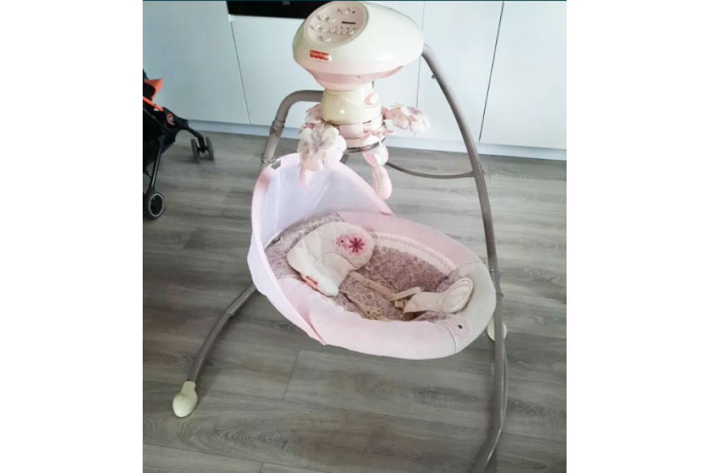 Качалка работает от элементов питания либо от сети. Ребёнок фиксируется пятиточечными ремнями безопасности, чтоб предотвратить возможное выпадение из люльки.