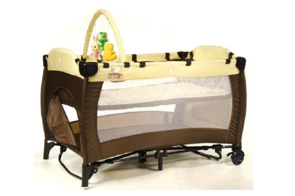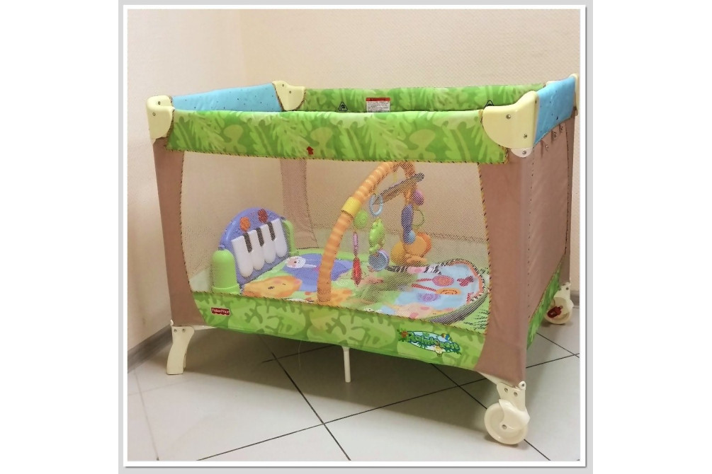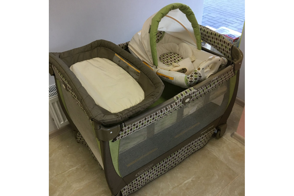 С пеленальным столиком, музыкой, виброблоком, качалкой, шторкой и ночником. Может использоваться как кровать с самого рождения и как игровой манеж с полугода. Съемный откидной пеленальный столик. Два уровня по высоте. На верхнем уровне (для совсем маленького ребенка) возможно горизонтальное покачивание. Нижний уровень устанавливается путем опускания матраса. Колеса с фиксаторами. Ночная встроенная подсветка. Прозрачные стенки по всему периметру. Складная модель. Габариты в разложенном виде 1150 х 750 х 1000 мм. В сложенном виде 350 х 300 х 850 мм. Вес 14,5 кг.