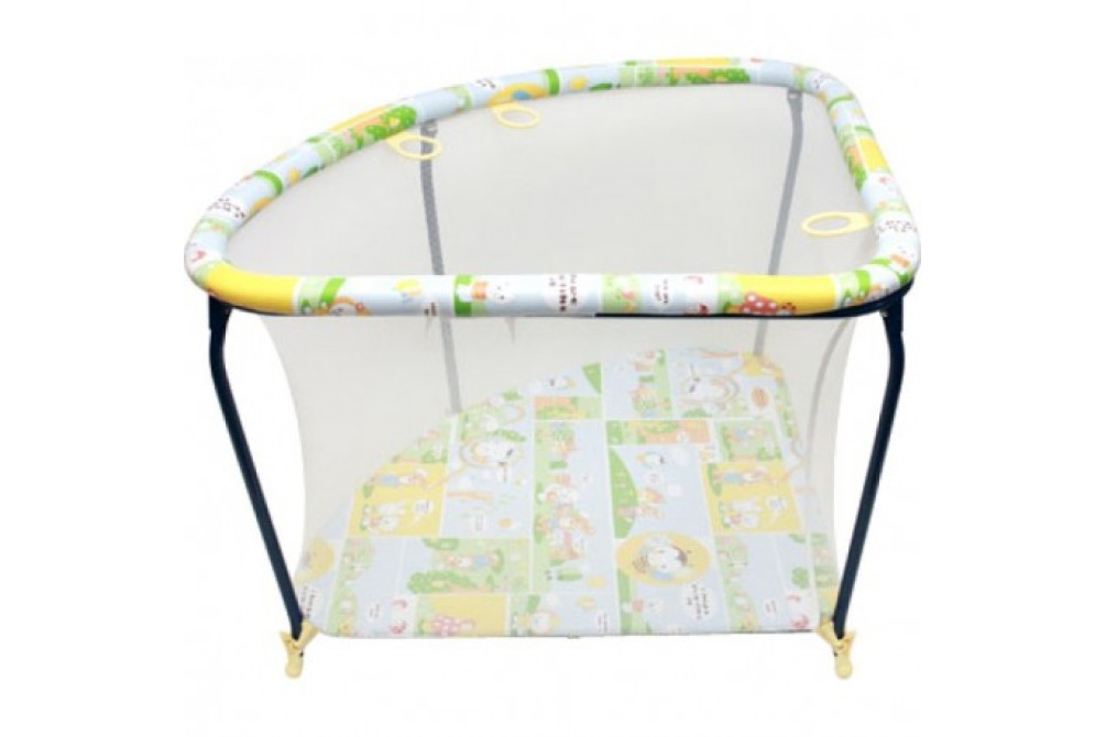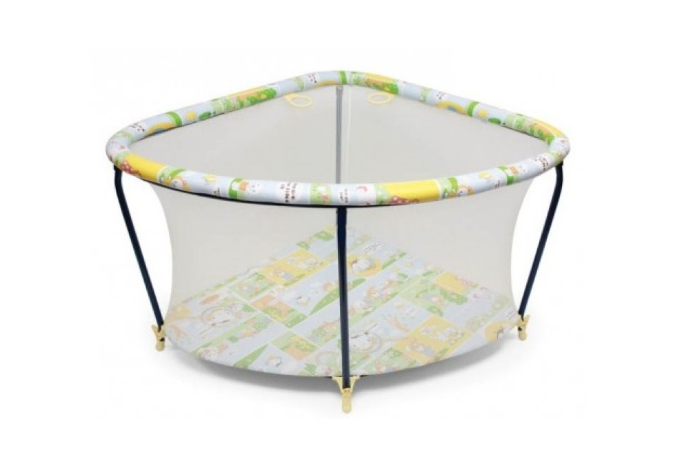 Манеж имеет прочный металлический каркас, мягкий бортик и дно.