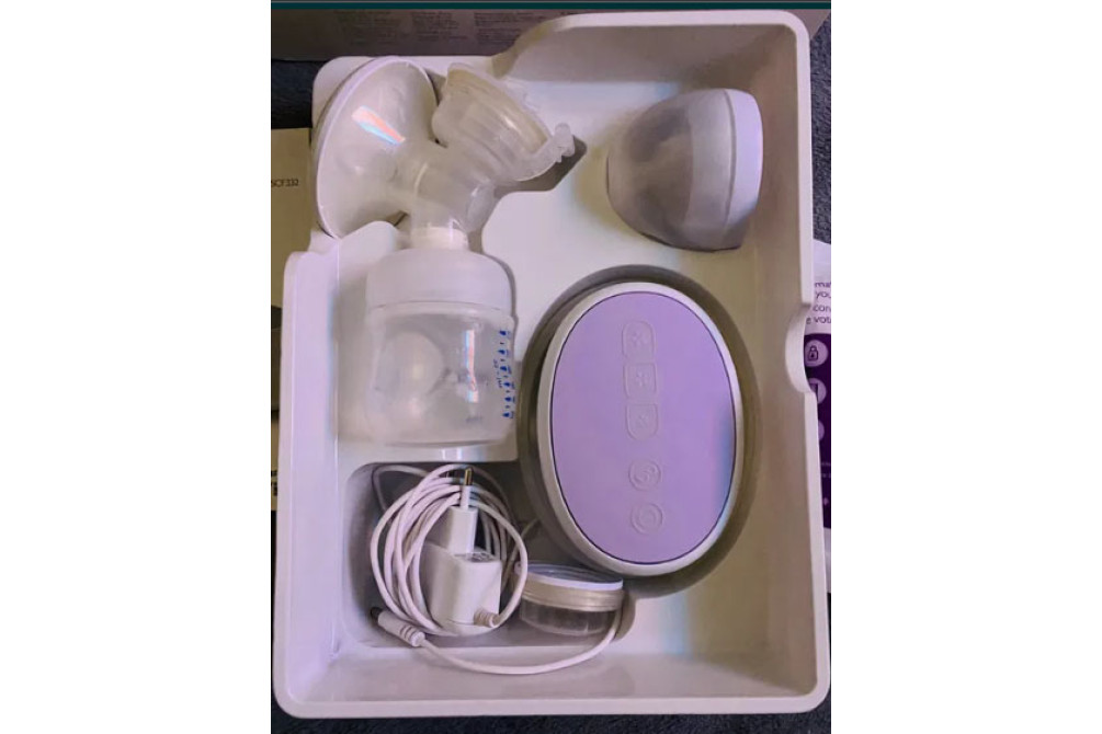 Одиночный электрический молокоотсос с массажной подушкой. Молокоотсос имеет уникальную конструкцию, что означает, что молоко попадает прямо в бутылочку или контейнер, даже когда вы сидите прямо.