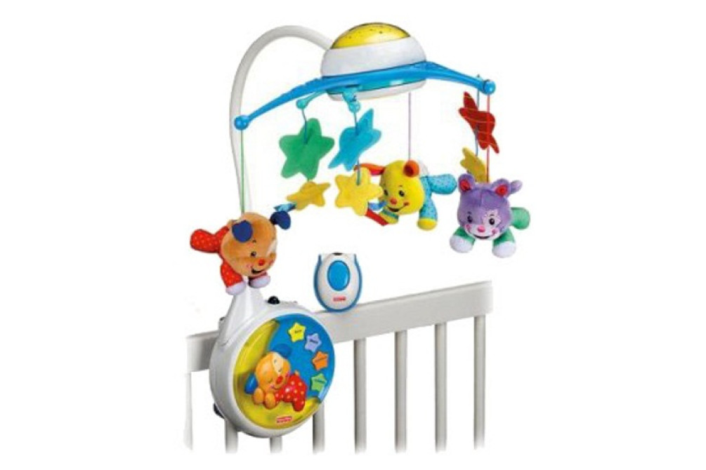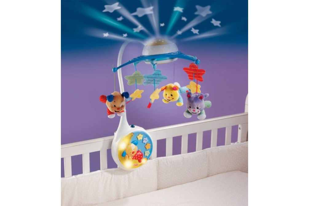 Карусель детская «Лунные сны» Fisher Price Мягкая проекция и классическая музыка успокоит малыша перед сном. 3 мягких подвесных игрушки в симпатичных пижамах: котенок, кролик и щенок будут кружиться над ребенком, и охранять его сладкие сны. На базе располагается мягкий ночник, который позволит маме проверить малыша ночью и не разбудить его. Световой проектор создаст в детской комнате сказочную атмосферу. В комплекте пульт дистанционного управления, который включает колыбельные мелодии и вращение мобиля. Универсальное крепление для колыбели или кроватки. Яркий проектор с веселыми картинками. Набор классической музыки и звуковых эффектов. Работает от 2 батареек ААА для пульта и 3D для мобиля, идут в комплекте.