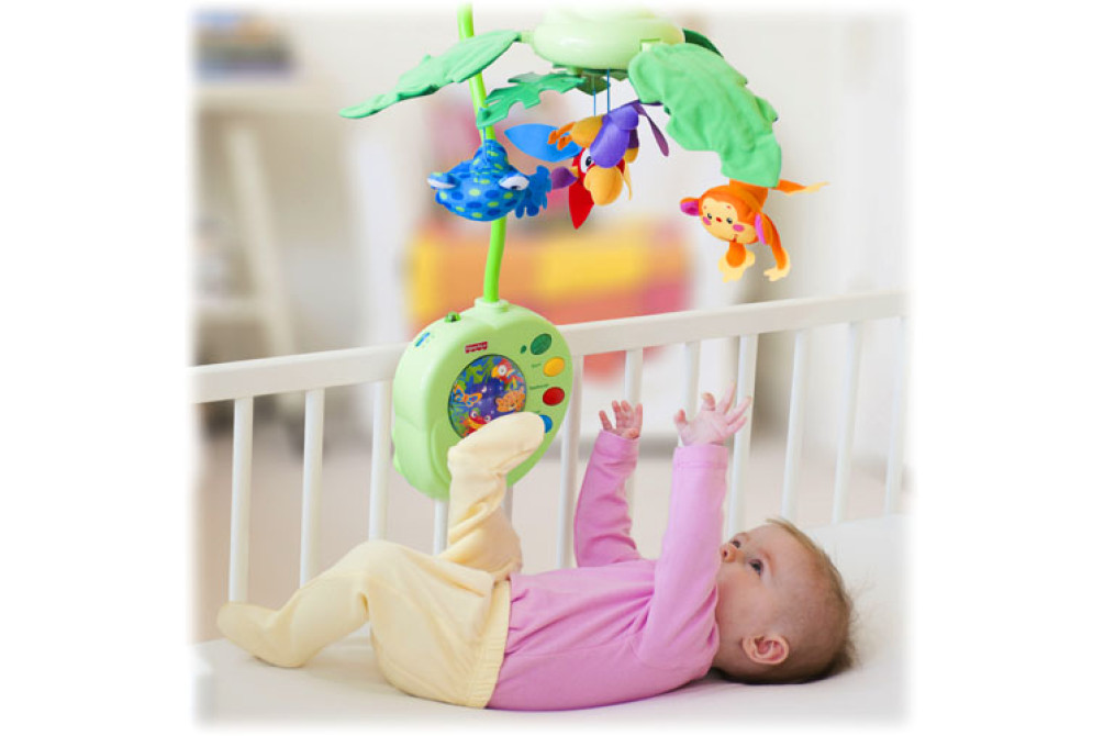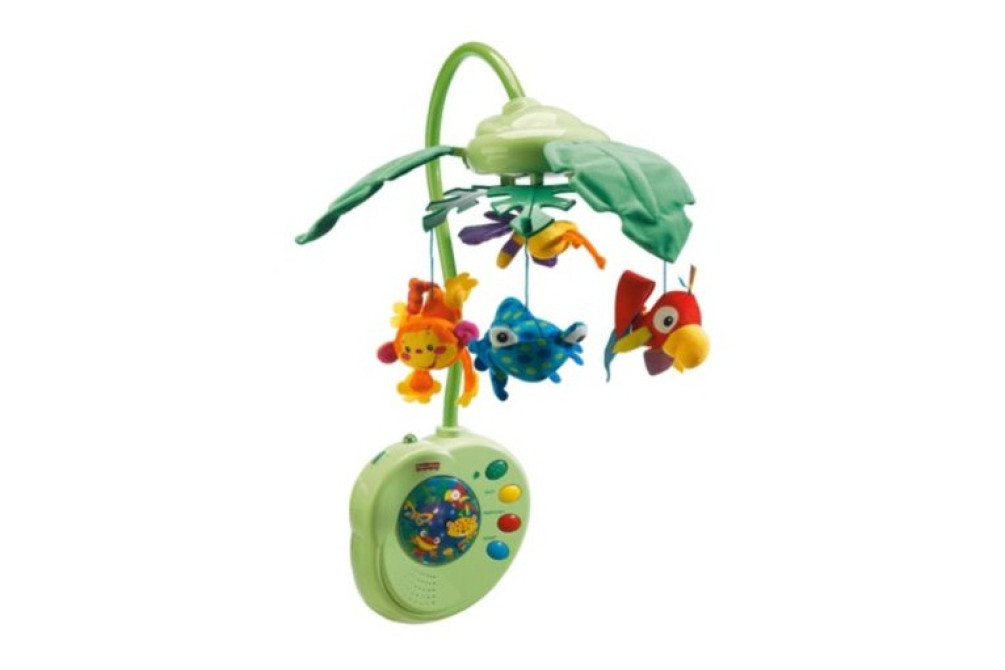Мобиль "Тропический лес" Fisher Price Возраст 0+ Движения мобиля и игрушек учат ребенка концентрировать внимание на движущихся предметах, развивают слух и зрение. Когда малыш достаточно подрастет, то сможет играть мягкими игрушками и засыпать под классическую музыку, так как блок можно использовать отдельно от дуги с игрушками. Подсветка исполняет функции ночничка, рассеивая мягкий свет. 3 режима: вращение, свет и вращение, только свет. 3 съемный мягкие игрушки (обезьянка, попугай и лягушка) и стационарная (бабочка). Продолжительность музыки 18 минут. Регулировка громкости. Возможность смены и выбора мелодий. Пульт дистанционного управления. Универсальный крепеж подходит к большинству боковин детских кроваток.