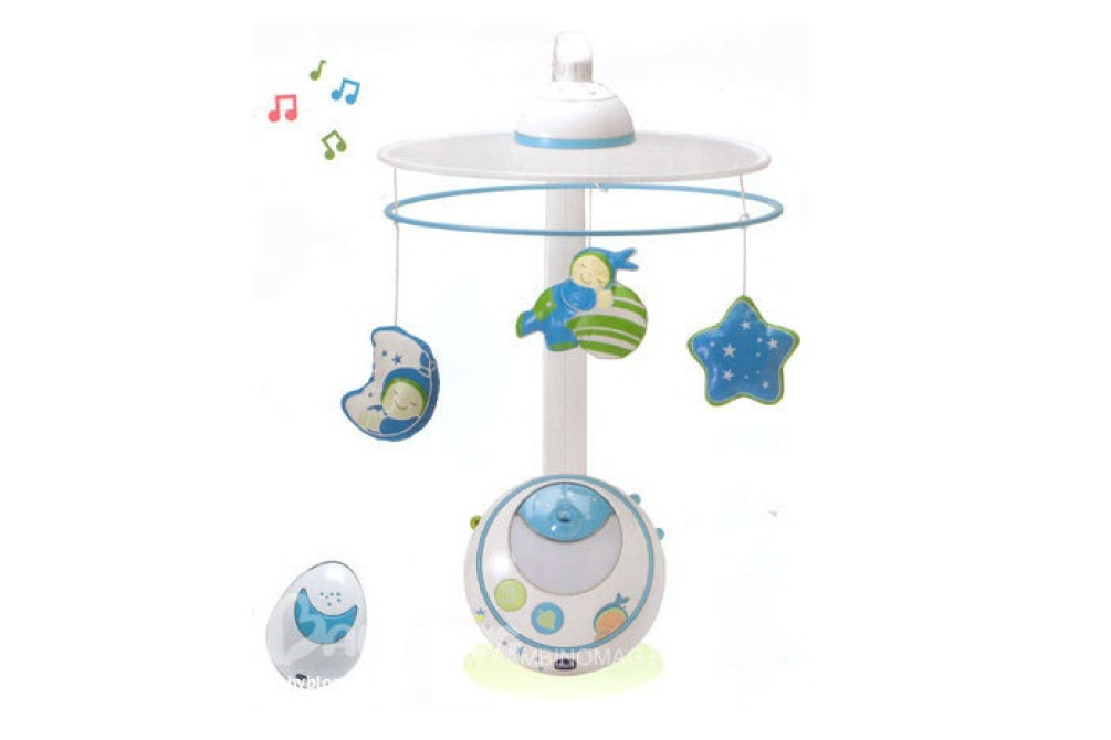 Подвеска-мобиль представляет собой проектор с подвесными мягкими игрушками.
