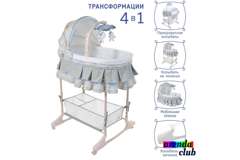 3. Мобильная колыбель. Сама люлька является съемной, а благодаря наличию полукруглых полозьев на её дне, она представляет из себя отдельную “люльку-качалку”.