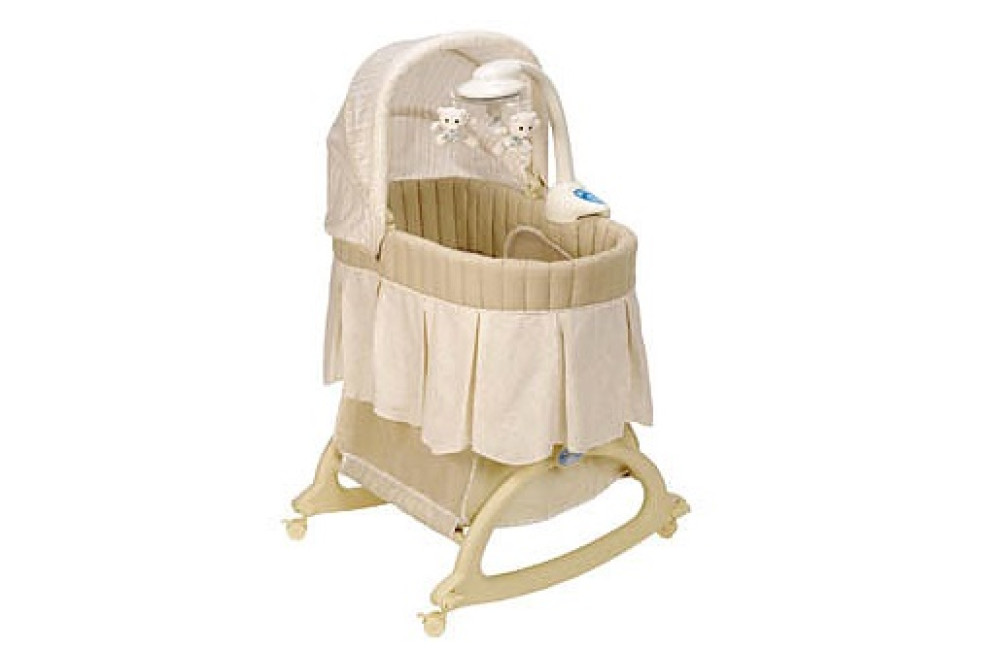 Колыбель легко трансформируется в качалку с помощью убирающихся колес.