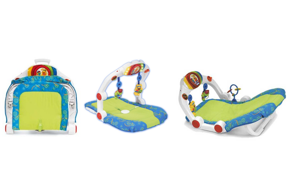 Детский тренажер Ergo Gym Chicco Развивающий детский тренажер Ergo Gym Chicco для малышей от рождения до 9 месяцев. Помогает развитию координации движений, моторных навыков, поддержания естественного и правильного положения тела, стимуляции слухового, зрительного и осязательного восприятия ребенка. Тренажер имеет 4 положения, для разных возрастных периодов малыша: 0 м+ «Гимнастический центр» - ребенок, лежа на спине на мягкой основе играет с погремушками, активизируя огни и веселые мелодии. 4 м+ «Детский стульчик» - малыш играет, или комфортно отдыхает, с удобной поддержкой спины в положении полулежа/полусидя. Ребенок, перемещая ножки, может легко дотянуться до кнопочек и активизировать забавные мелодии со вспыхивающими огнями. 6 м+ «Активный игровой коврик» - способствует укреплению шеи и спинной мускулатуры, лежа на животе во время игры. 9 м+ «Развивающая игровая панель» - сидя на мягкой основе, ребенок играет с электронной панелью со вспыхивающими огнями и забавными мелодиями. Работает от батареек 2 АА х 1,5V (в комплекте).