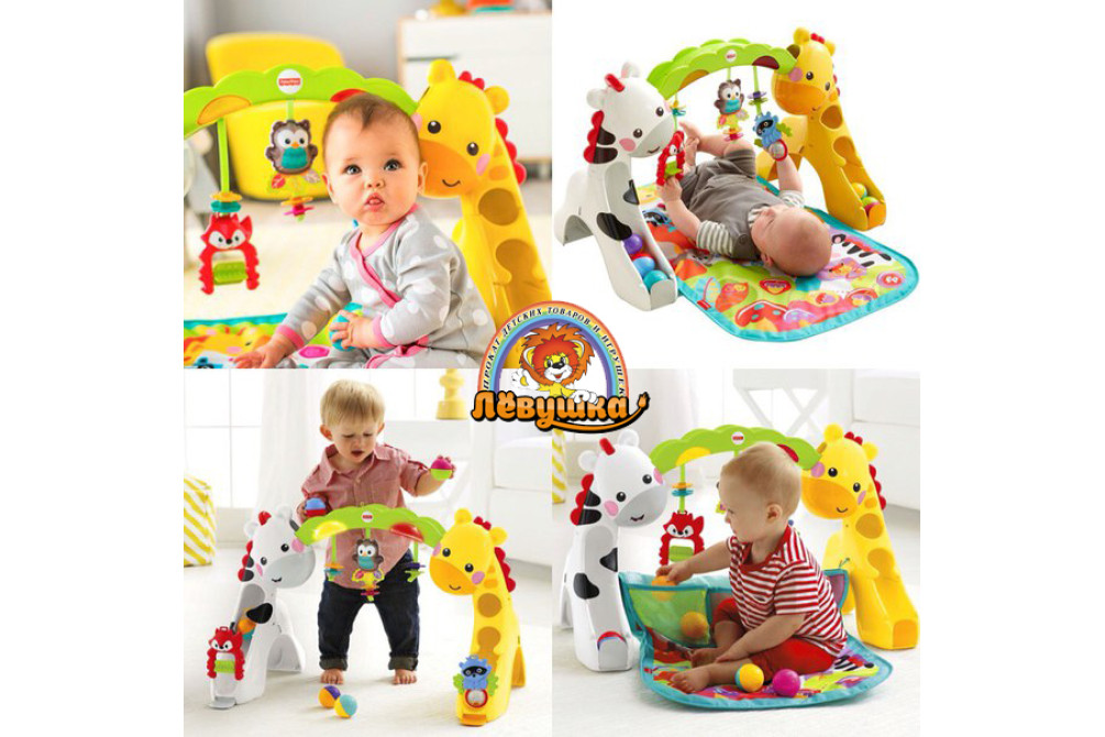 Игровой центр-коврик 3 в 1 Fisher Price 3 режима использования, более 12 забав и возможностей для игры! Режим 1: лежа на коврике, младенец играется подвесными игрушками и активирует звуковые и световые эффекты. Режим 2: игровой центр трансформируется для игры сидя – задняя часть коврика стоит, открывая дополнительные возможности для игры. Режим 3: стоя, малыш складывает шарики в верхнюю часть игрового центра и наблюдает, как шарики весело скатываются с горок.