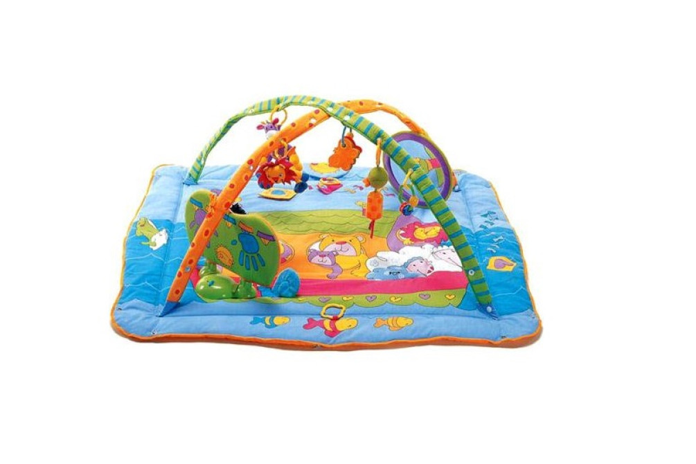 Может использоваться в 3-х вариантах: - коврик с дугами и мягкими бортами (для самых маленьких), - коврик с дугами без бортов (для подросших малышей), - просто игровой коврик. В комплекте: - погремушка пластмассовая, - прорезыватели для зубов - 3 разноцветные бабочки, - мягкий утенок с ветряным колокольчиком (18х6), - мягая погремушка Жираф (23х7), - мягая погремушка Львенок (14х9), - большое безопасное зеркало в мягкой оправе (25х25). Размер коврика 102 х 110 х 45 см. Для детей с рождения до 10 месяцев.