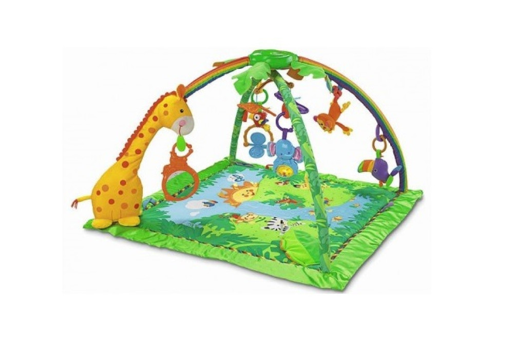 Музыкальный коврик Fisher-Price "Тропический лес" Рекомендован для деток с рождения до 9 месяцев. Этот очаровательный коврик, полностью реализует функционал раннего развития малыша (скрытые элементы, разнообразие фактур, подвесные игрушки-прорезыватели, специально разработанная подушка и безопасное зеркальце и т.д.). Особенность центра заключается в том, что можно размещать игрушки как в пределах досягаемости, так и просто в поле зрения малыша. Есть 3 положения игры, благодаря которым ребенок развивает руки, ноги, шею, и мышцы тела: лежа на спине; лежа на животике; положении сидя. Забавные мелодии; блок управления светом и звуком (громкость звука регулируется); Комплекс дает возможность менять местоположение всех игрушек, а также добавлять другие для новых игр. Механизм оснащен регулятором громкости. Развивающий коврик легко складывается.