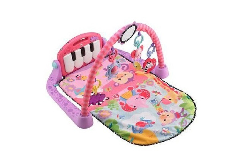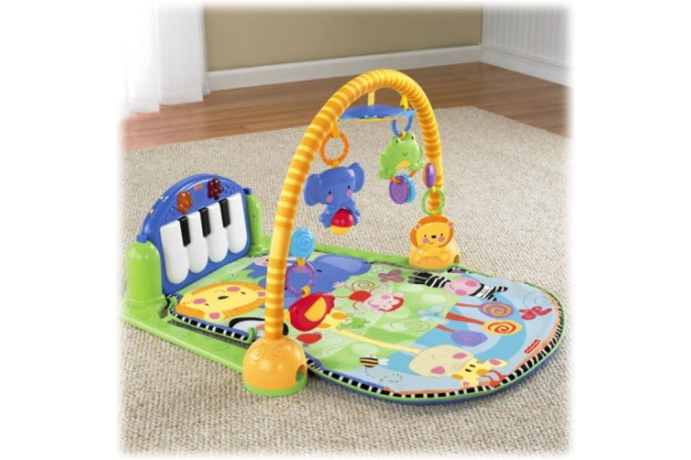 Развивающий музыкальный коврик Fisher-Price "Пианино" На дугу коврика можно закрепить 3 подвесные игрушки: львенка с мягкой гривой, слоника с вращающимся шариком и лягушку с рельефными колечками, птичку-прорезыватель и безопасное зеркало. Особенность центра заключается в том, что игрушки можно размещать как в пределах досягаемости, так и просто в поле зрения малыша. Есть 3 положения игры, благодаря которым ребенок развивает руки, ноги, шею, и мышцы тела. Пианино может издавать короткие звуки и мелодии, вы также можете установить режим воспроизведения, чтобы пианино могло воспроизводить музыку в течение 15 минут. Когда малыш нажимает клавиши пианино для проигрывания мелодий, на клавишах появляются светящиеся бабочки. Комплекс дает возможность менять местоположение всех игрушек, а также добавлять другие для новых игр. Механизм оснащен регулятором громкости. Развивающий коврик легко складывается.