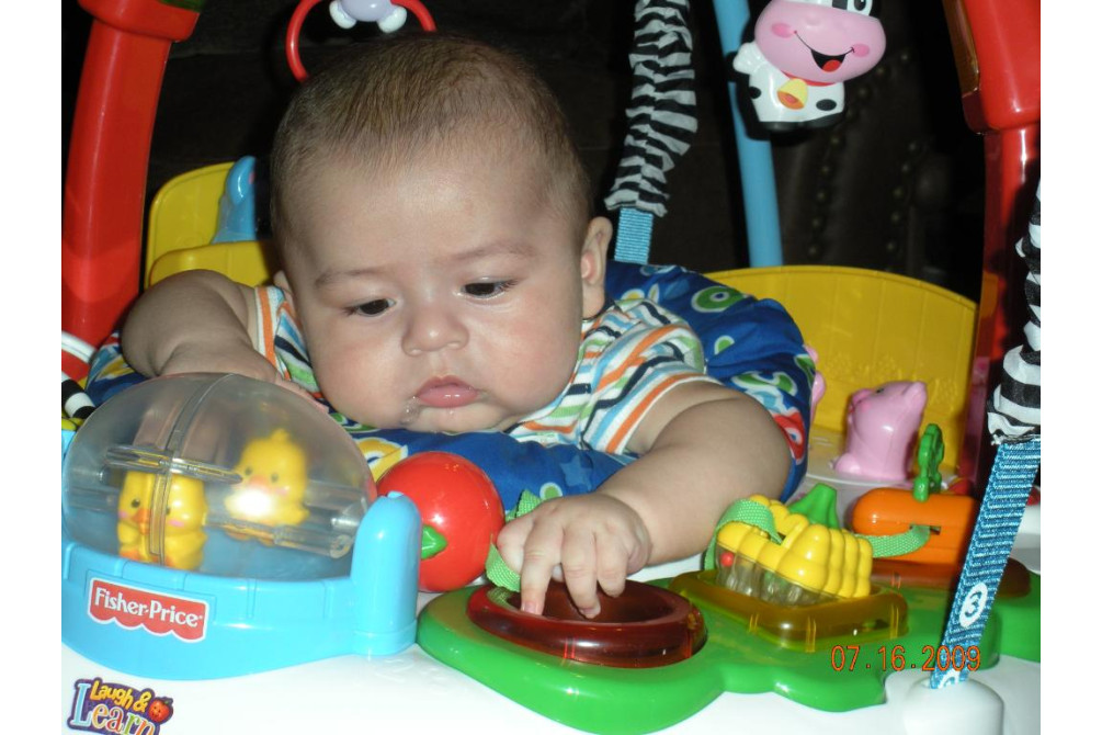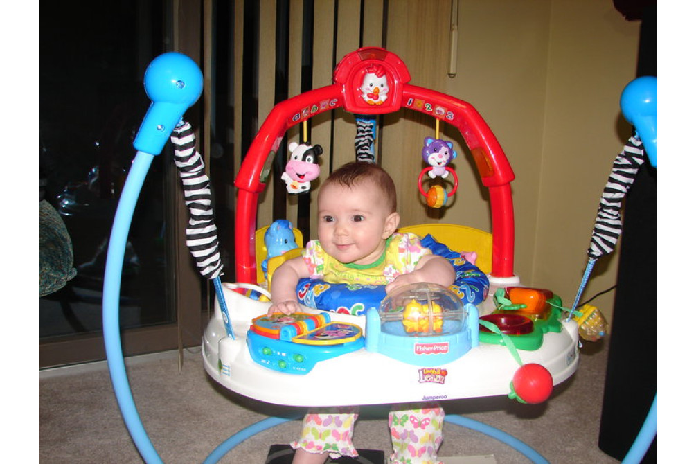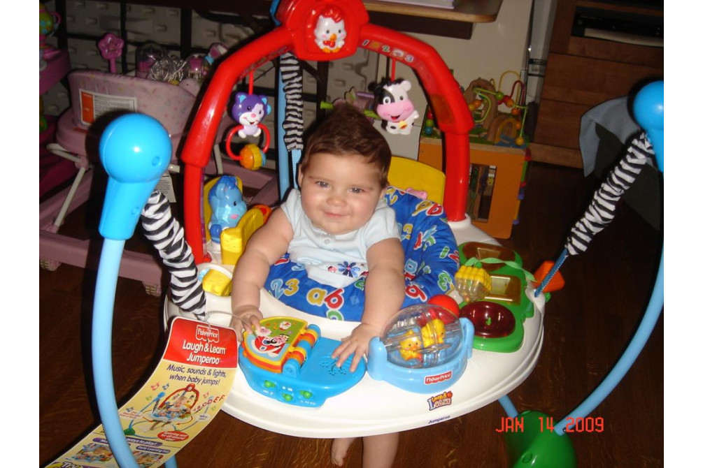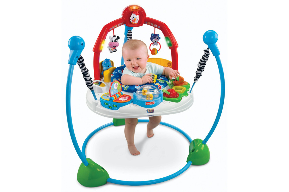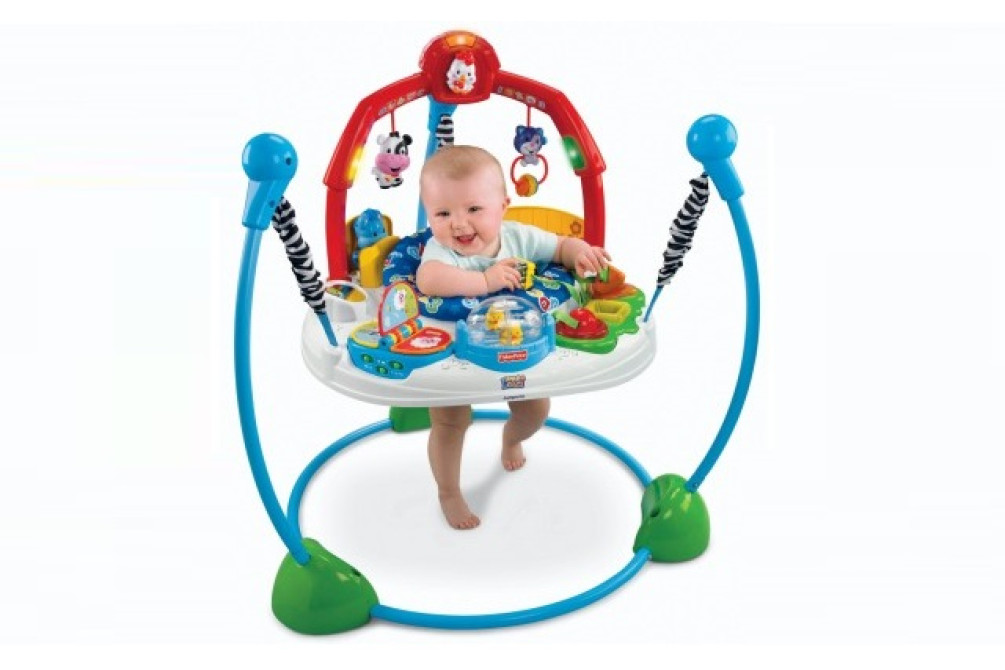 Для детей от 4 месяцев и пока ребенок не достигнет веса 11 кг или роста 81 см. Стимулирует общефизическое развитие ребенка, способствует укреплению мышц, развивает координацию движений, моторные навыки, чувство равновесия. Легко складывается и переносится. Звуки животных в специальной книжке с яркими страницами. Светомузыкальный сортер в виде помидорки, кукурузы и морковки. 3 смешные свинки, которые то прячутся, то выскакивают. Светомузыкальная дуга с двумя подвесными игрушками. Прыжки активируют огни и звуковые эффекты. Сиденье вращается, что позволяет малышу исследовать все игрушки.