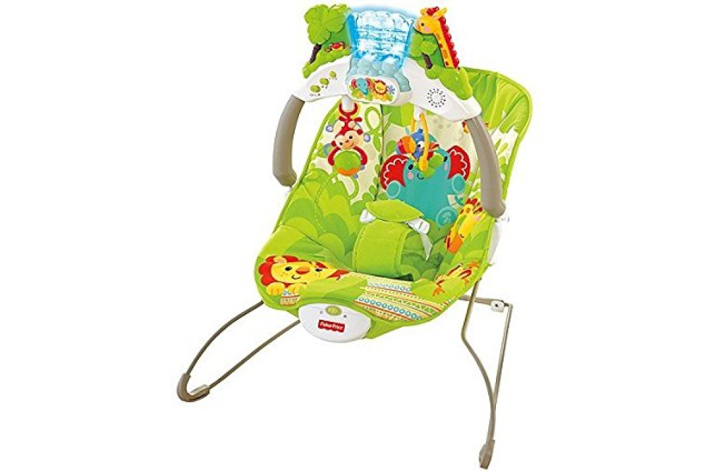 Лидером проката детских товаров по отзывам наших клиентов является шезлонг Джунгли fisher price. Предназначен для малышей с самого рождения и пока вес ребенка не достигнет 9 кг.