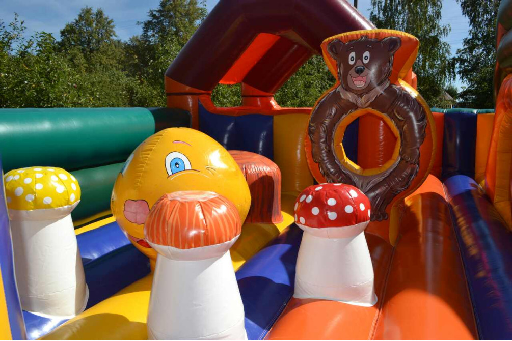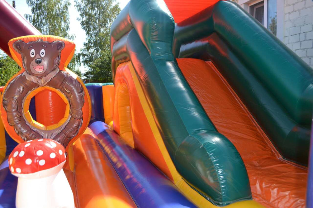 Подарите Вашим детям немного сказки. Детский аттракцион-батут "В гостях у сказки" - красочный, интересный и оригинальный аттракцион, который станет неотъемлемой частью детского праздника. Для детей это будет лучшим развлечением, и Вам не нужно будет думать, чем их занять – достаточно пустить детей на большое надувное игровое поле, и потом снять их оттуда будет очень непросто. В комплексе имеется горка, тоннель, крытый домик с сухим бассейном, игровые фигурки сказочных персонажей.